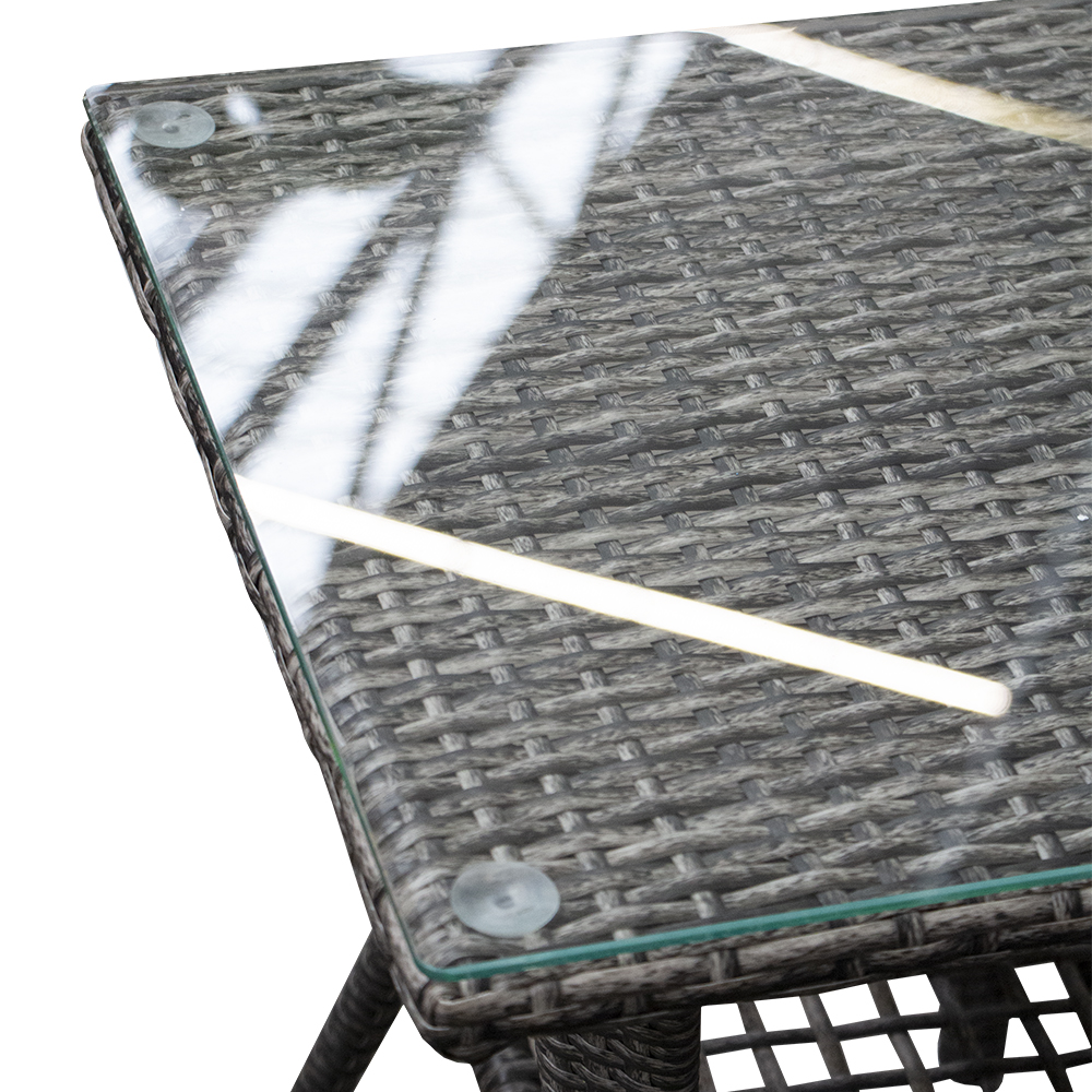 Лаконичный дизайн стола идеально располагает к отдыху, сформирует уютное пространство в гостиной, на веранде. Небольшой кофейный столик выполнен из искусственного ротанга. Материал устойчив к температурным перепадам, УФ-лучам, хорошо отталкивает воду, легок в уходе. Закаленное стекло толщиной 5 мм располагается поверх плетеной поверхности стола. Усиление в нижней части выполнено в виде дополнительной полочки размером 24x24 см. Незначительный вес изделия позволяет с легкостью перемещать его из одной зоны в другую.