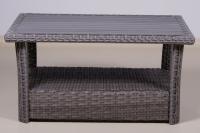 Столик кофейный плетеный из искусственного ротанга сделан из декинга, отличающегося особой прочностью и стойкостью к царапинам и истиранию, а оригинально оплетеные края столешницы, ножки и подстолье придают изделию оригинальный вид.