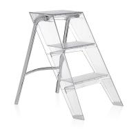 Стремянка, отличающаяся яркой самобытностью и высокой функциональностью. Счастливый союз формы и содержания. Практические качества изделия обусловлены использованием технологий Kartell, которые позволили сформировать Поликарбонат, придав ему устойчивость, крепость и прочность - свойства, необходимые для стремянки. Прочная металлическая структура, соединенная с прозрачным, блестящим Поликарбонатом с эффектом кристалла. Ступеньки с предохраняющим от скольжения покрытием удобны и надежны. Изделие не только практично и функционально, но и красиво, может использоваться в качестве украшения интерьера.