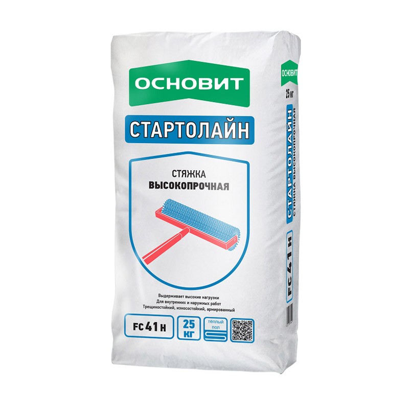 Сухая смесь для стяжки пола Основит Старолайн FC41 H предназначена для предварительного выравнивания оснований и устройства прочного пола в жилых, офисных, торговых и общественных помещениях. Сухая смесь для стяжки пола Основит Стартолайн FC41 H применяется для устройства всех видов стяжек, в том числе “плавающих”, стяжек на разделительном слое, укрытия трубопроводов и придания полу необходимого уклона. Применяется в системе “Теплый пол”. Используется сухая стяжка для внутренних и наружных работ.