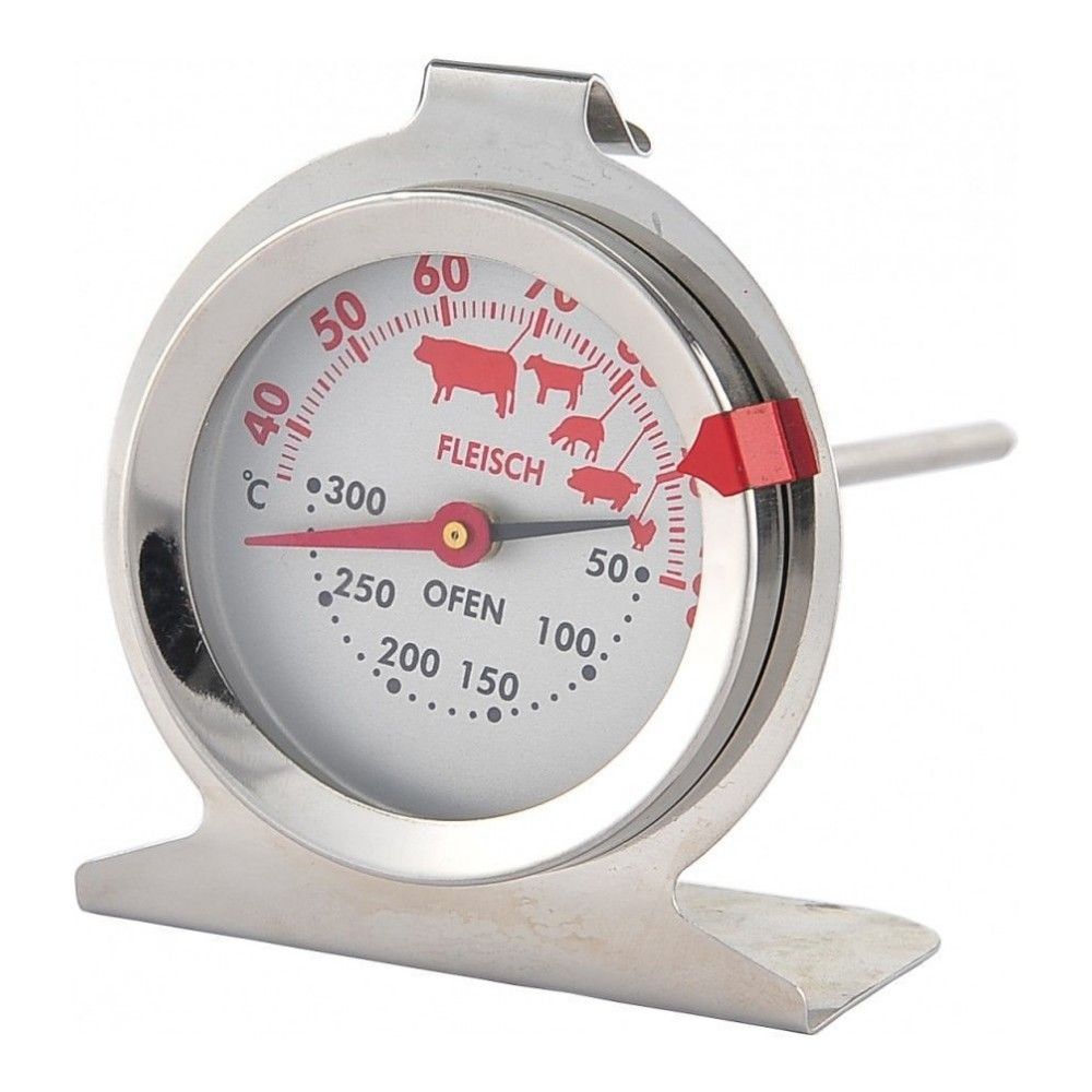 Термометр измеряет температуру внутри куска мяса, а также может быть использован для измерения температуры в духовке. на шкале термометра пиктограммами обозначены оптимальные температуры для приготовления разных видов мяса.