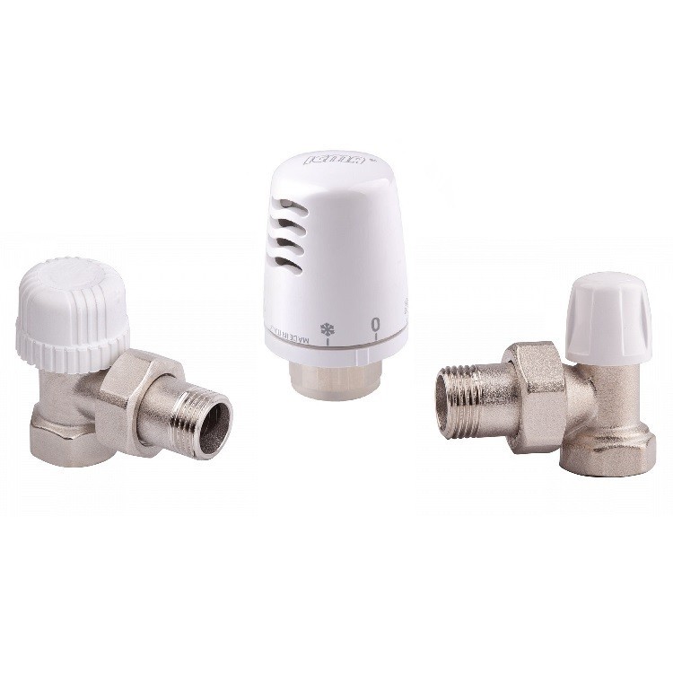 Угловой термостатический комплект ICMA включает в себя вентиль термостатический 774, вентиль нижний 805 и термостатическую головку 1100. Предназначен для регулирования теплового режима отопительного прибора путем изменения количества теплоносителя от нуля до величины, которая определена данным настроечным вентилем. Такой принцип регулирования позволяет производить плавную регулировку и снижать шумы, возникающие в системе отопления при движении теплоносителя. В данном термокомплекте производится установка термостатической головки с резьбой 28х1,5. Вентиля ICMA выполнены из высококачественных материалов: корпус вентилей выполнен из горячештампованной латуни, наружное покрытие – никелирование. Максимальная температура использования составляет 110 °С. Термостатический вентиль с установленной термостатической головкой ICMA создан специально для автоматического поддержания заданной температуры в помещении. Принцип работы термоголовки основан на сжимании и расширении внутреннего цилиндрического гофрированного устройства наполненного специальной жидкостью. При увеличении комнатной температуры теплочувствительный цилиндр расширяется и давит на шток терморегулирующего вентиля, который в свою очередь перекрывает проходное отверстие вентиля, тем самым, уменьшая количество воды, поступающей в радиатор. При уменьшении комнатной температуры цилиндр сжимается, открывая вентиль, таким образом вода в радиатор поступает в большем количестве, и температура в помещении увеличивается. Благодаря применению термостатических вентилей и термостатических головок ICMA, стало возможным автоматическое поддержание заданной комнатной температуры, что обеспечивает комфортные условия проживания и существенную экономию расхода топлива.