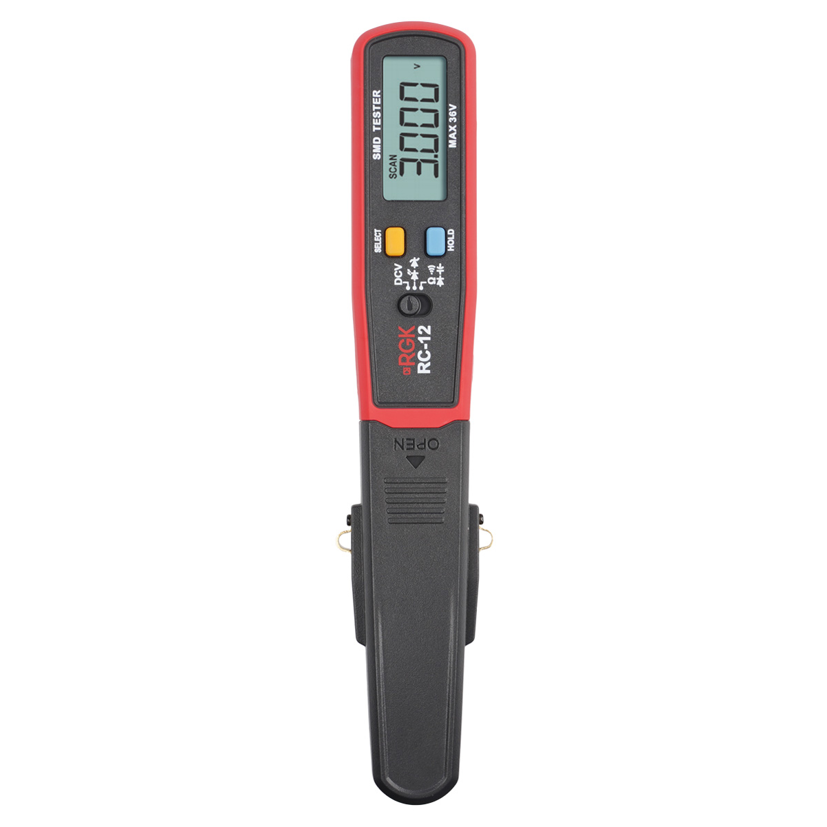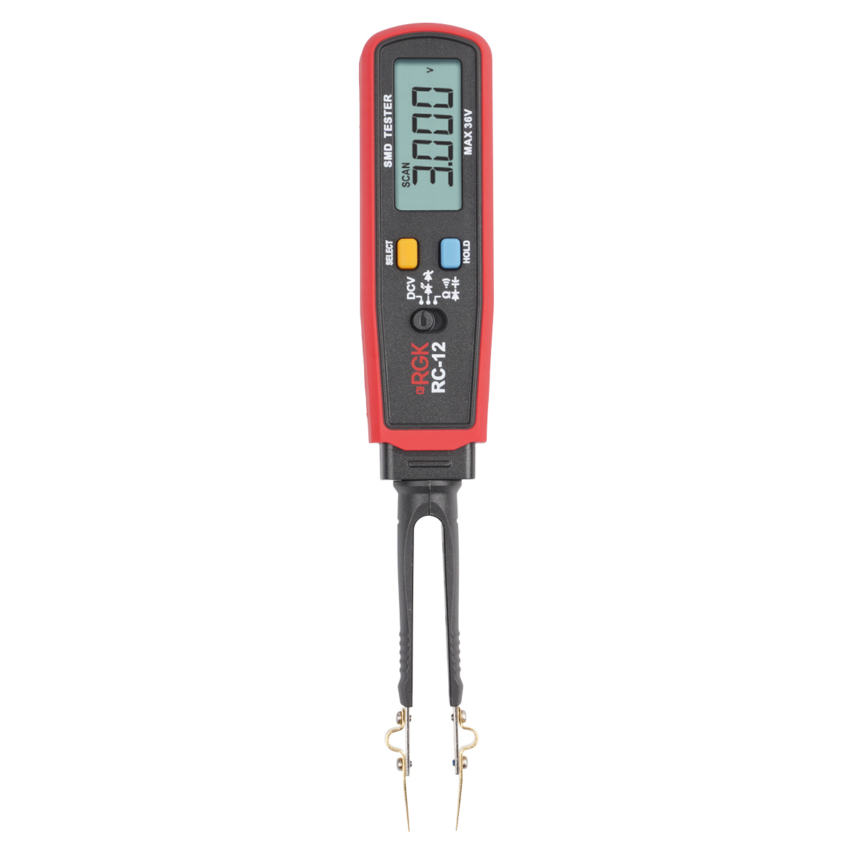 SMD тестер RGK RC-12 - компактный и удобный прибор с множеством функций для проверки компонентов радиоэлектронной аппаратуры. Главное отличие от младшей модели с индексом “10” заключается в возможности измерения напряжения постоянного тока до 36 В, которая пришла на смену режиму тестирования батареек.