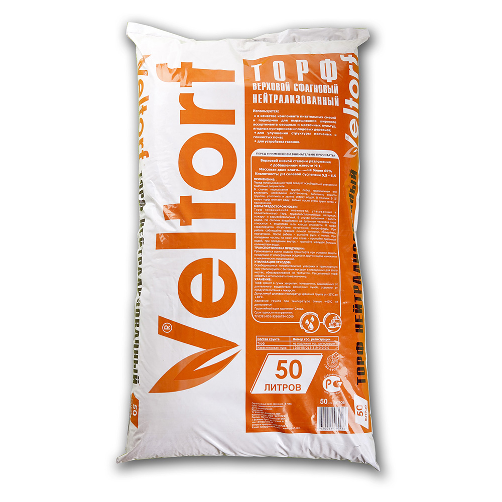 Торф верховой нейтрализованный используется для составления почвенных смесей, мульчирования, зимнего укрытия для растений. Отличается воздушной структурой и легкостью. Он более сухой по сравнению с низинным, содержит частички разной фракции. Имеет высокую кислотность, поэтому в состав включены нейтрализующие вещества. Особенности: - улучшает структуру почвы - делает ее более рыхлой; - снижает слеживаемость грунта; - способен впитывать большое количество влаги; - улучшает воздухообмен, способствует аэрации корневой системы. Массовая доля влаги: не более 65%. Кислотность: рН водной суспензии 5,5 - 6,5.