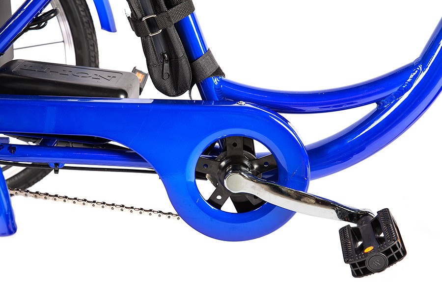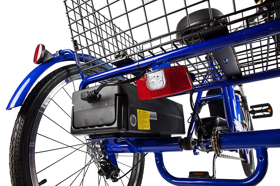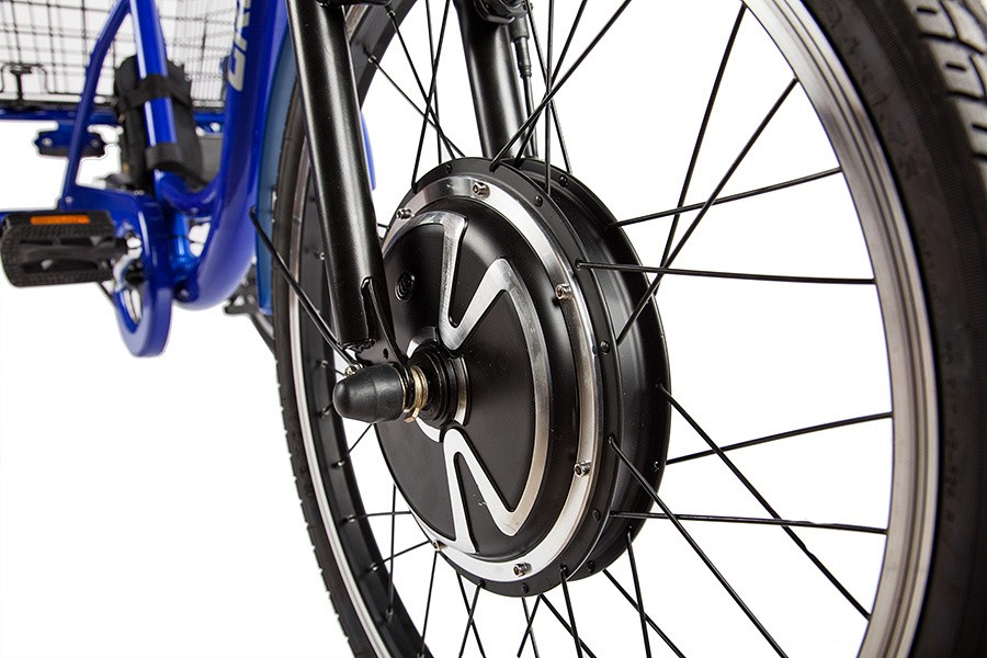 Стальная рама трицикла выдерживает нагрузку до 110 кг. При этом заднюю часть рамы с корзиной можно нагружать до 50 кг. Колеса собраны на основе двойных ободов с усиленными стальными спицами. Это делает Crolan 500W незаменимым для дачи, где есть задача периодически перевозить грузы средней тяжести, но при этом не хочется лишать себя возможности совершить приятную велопрогулку. Электродвигатель трицикла мощностью 500 Вт справляется с высокими нагрузками, а аккумулятор позволяет проехать до 40 километров на одном заряде.
