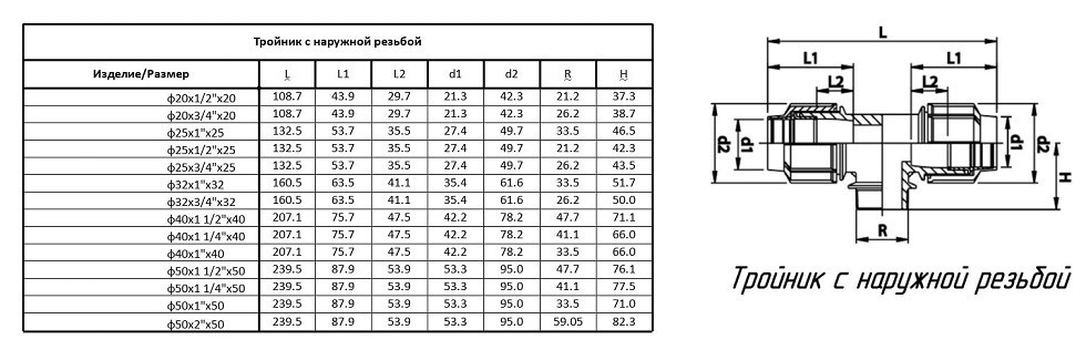 Тройник ТПК-Аква компрессионный с наружной резьбой 20 мм 3/4 дюйма