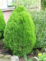 Медленнорастущий кустарник с плотными, нежными побегами. Форма кроны яйцевидная. Хвоя золотисто-жёлтая, осенью имеет красивый медный оттенок. Неприхотлив к почвенным условиям. Морозостоек. Используется в ярких контрастных группах, одиночно, в контейнерном озеленении.