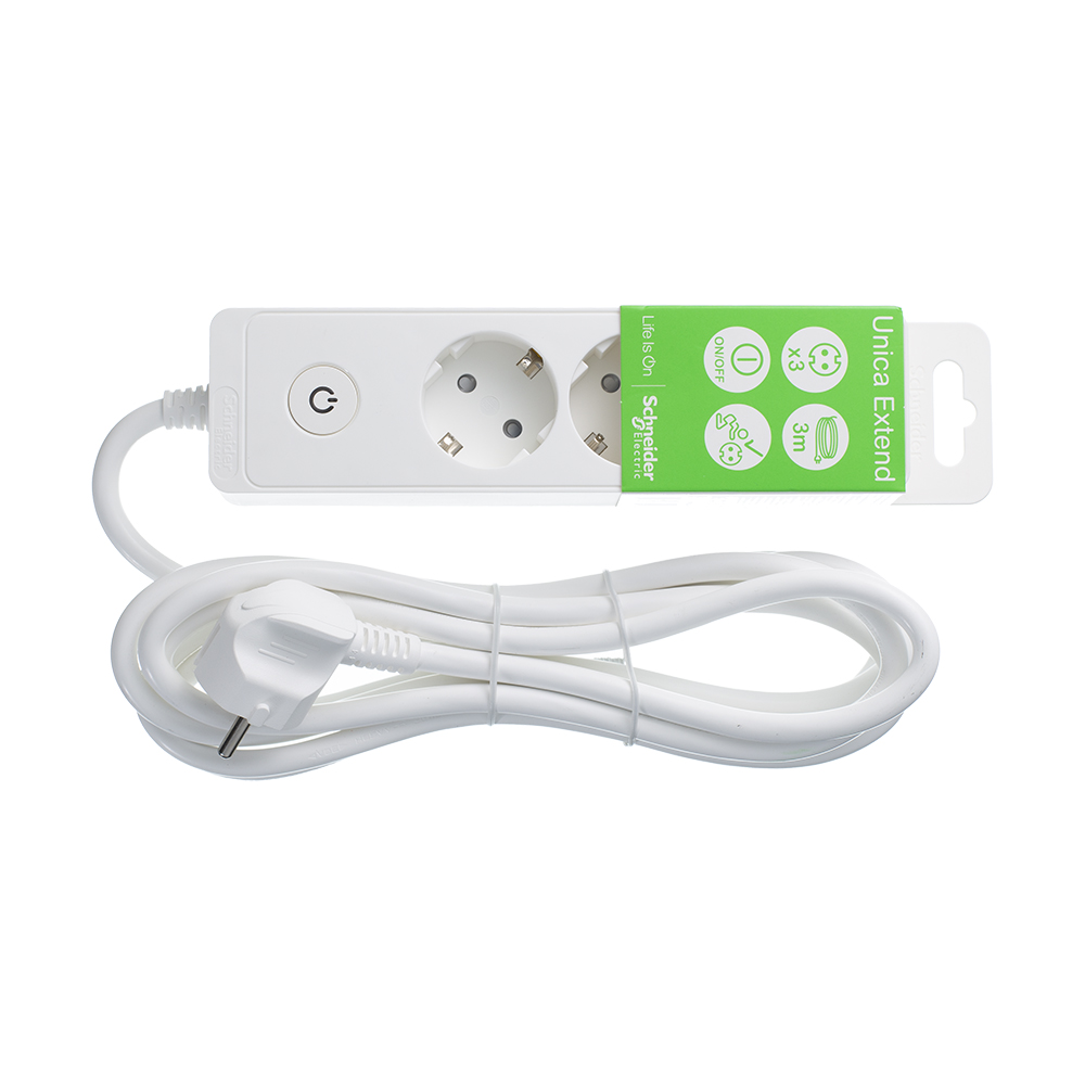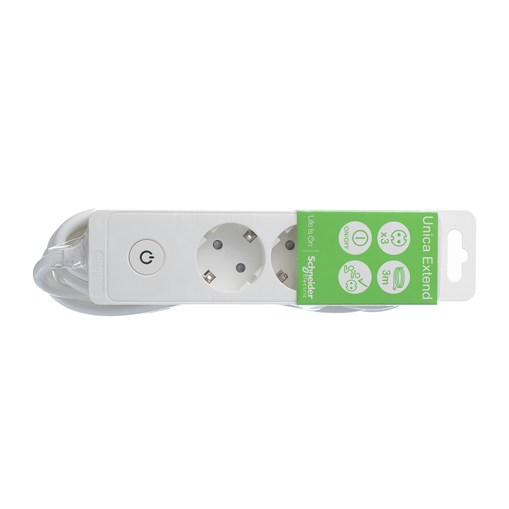 Удлинитель Schneider Electric 3 гнезда с заземлением 3 м белый