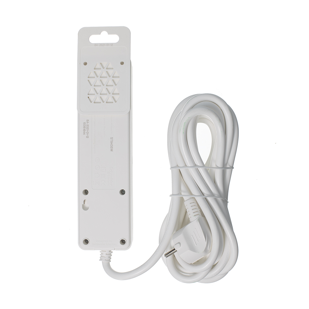 Удлинитель на 3 гнезда Schneider (Шнайдер) ST9435W оснащен специальными отверстиями для фиксации на стене. Эргономичная литая вилка с легкостью позволит одним движением подсоединить удлинитель к сети, а кнопка включения с зеленой индикацией, не оставит сомнения, что он готов к работе. Гнезда удлинителя расположены под углом 45°для удобного использования. Особенности: - изготовлен из негорючего самозатухающего пластика; - температура эксплуатация от -10°C до +40°C ; - кнопка включения с индикацией; - удобное подключение вилок; - защитные шторки для защиты детей от удара током.