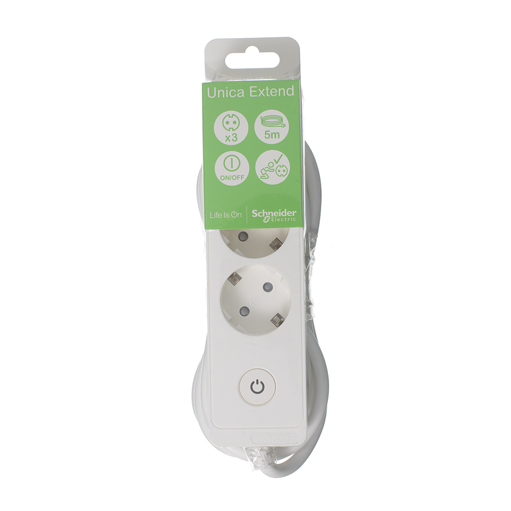 Удлинитель Schneider Electric 3 гнезда с заземлением 5 м белый