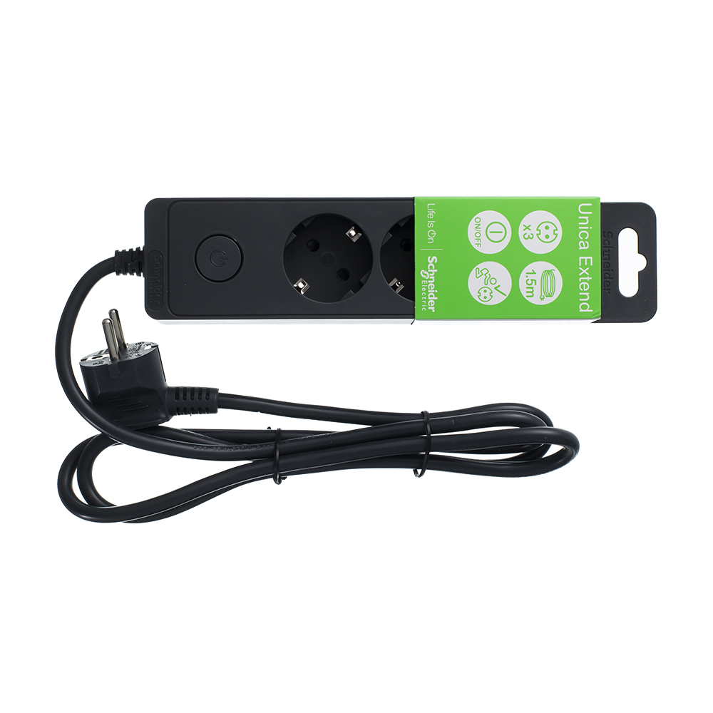 Удлинитель Schneider Electric 3 гнезда с заземлением 1,5 м черный
