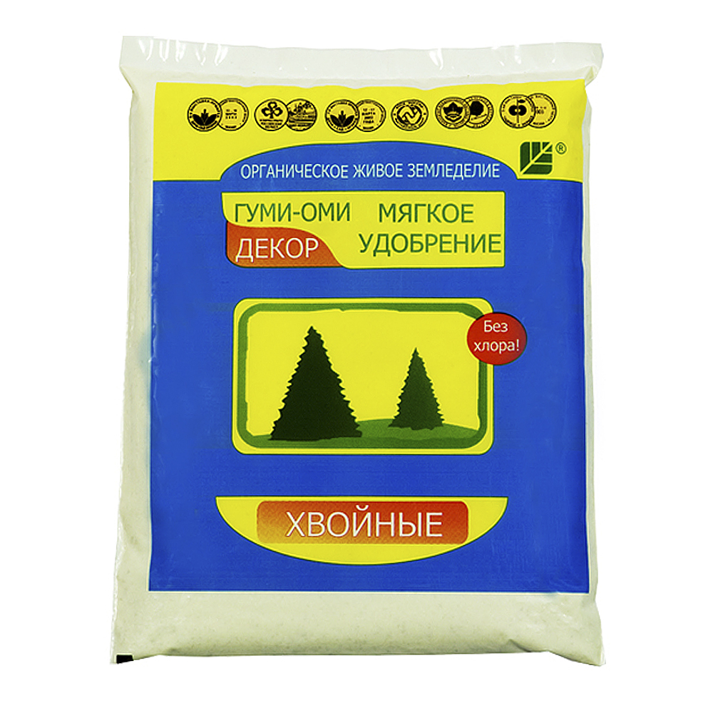 Гуми-Оми Хвойные - органоминеральное удобрение с микроэлементами. Применяется для питания растений, улучшения роста, улучшения декоративных свойств, улучшения структуры почвы.
