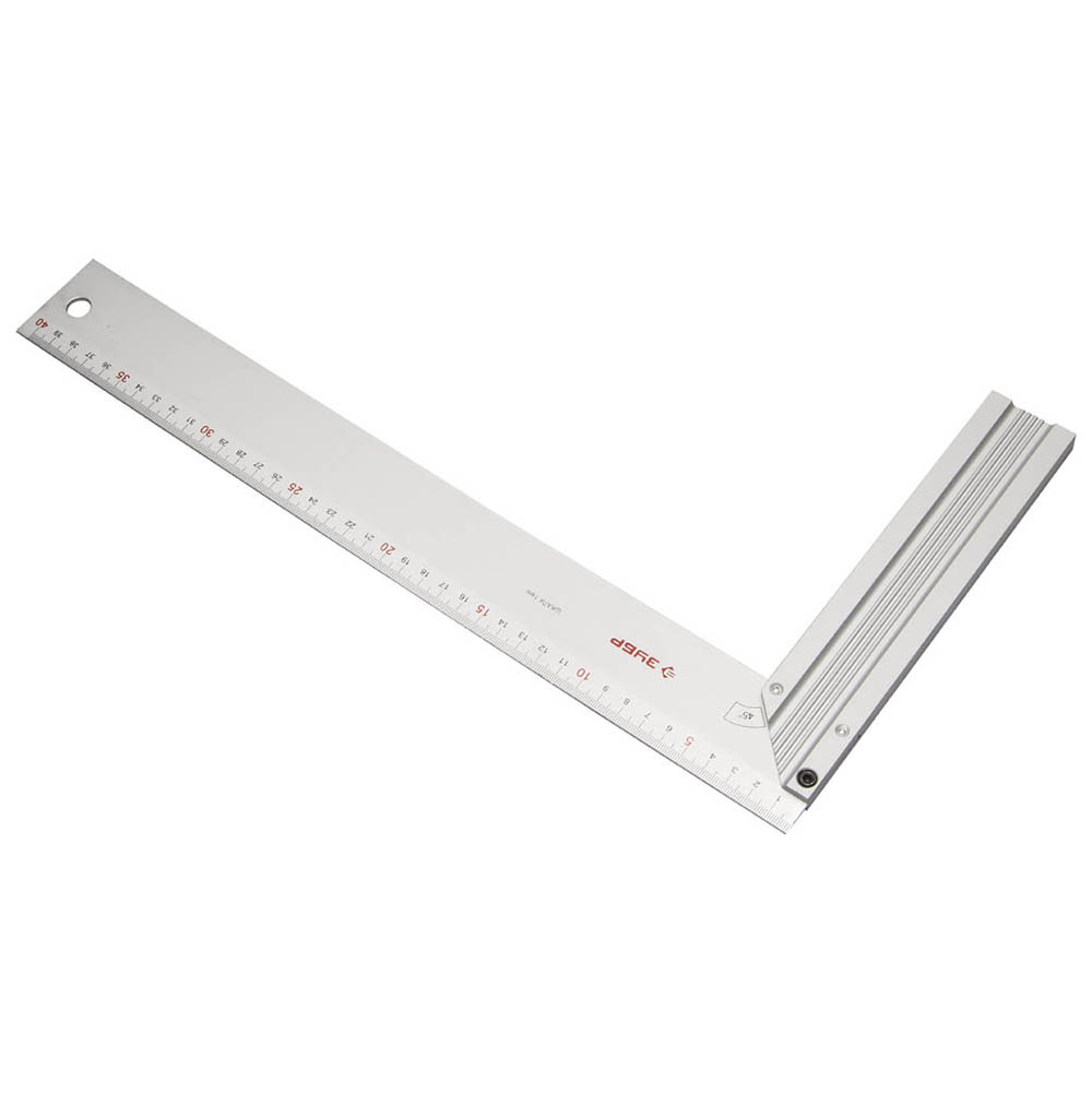 Угольник ЗУБР 34395-40 имеет прочную алюминиевую конструкцию с тёмной разметкой на широком полотне. На поверхности изделия нанесено стойкое к механическим воздействиям покрытие. Разметка на полотне инструмента выполнена в сантиметрах. Для удобного хранения угольника на крючке предусмотрено отверстие.