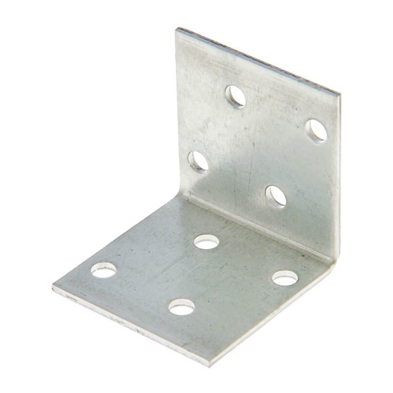 Предназначен для крепежа деревянных конструкций под углом 90 градусов. Изготовлен из нержавеющей стали толщиной 2 мм. Имеет отверстия под саморезы, гвозди, болты. Длина полки уголка 40 мм, ширина 40 мм