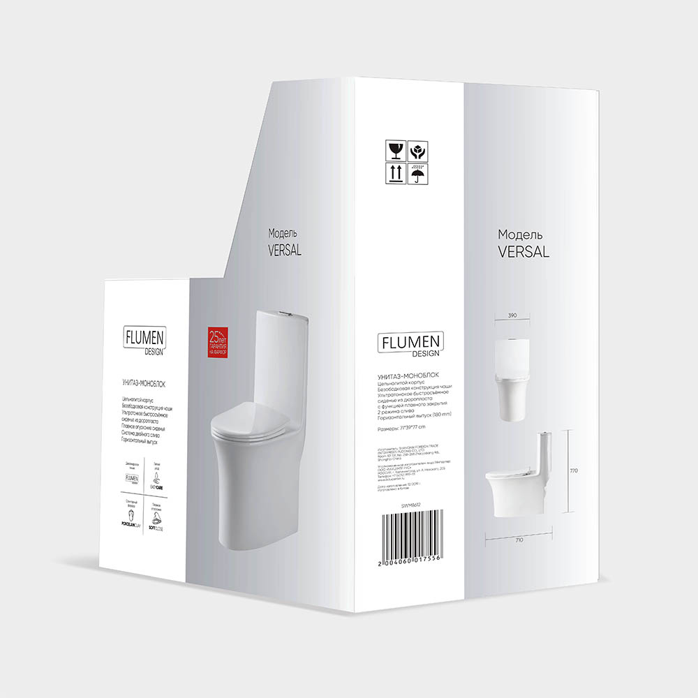 Унитаз-моноблок FLUMEN DESIGN Versal безободковый с сиденьем плавное закрытие