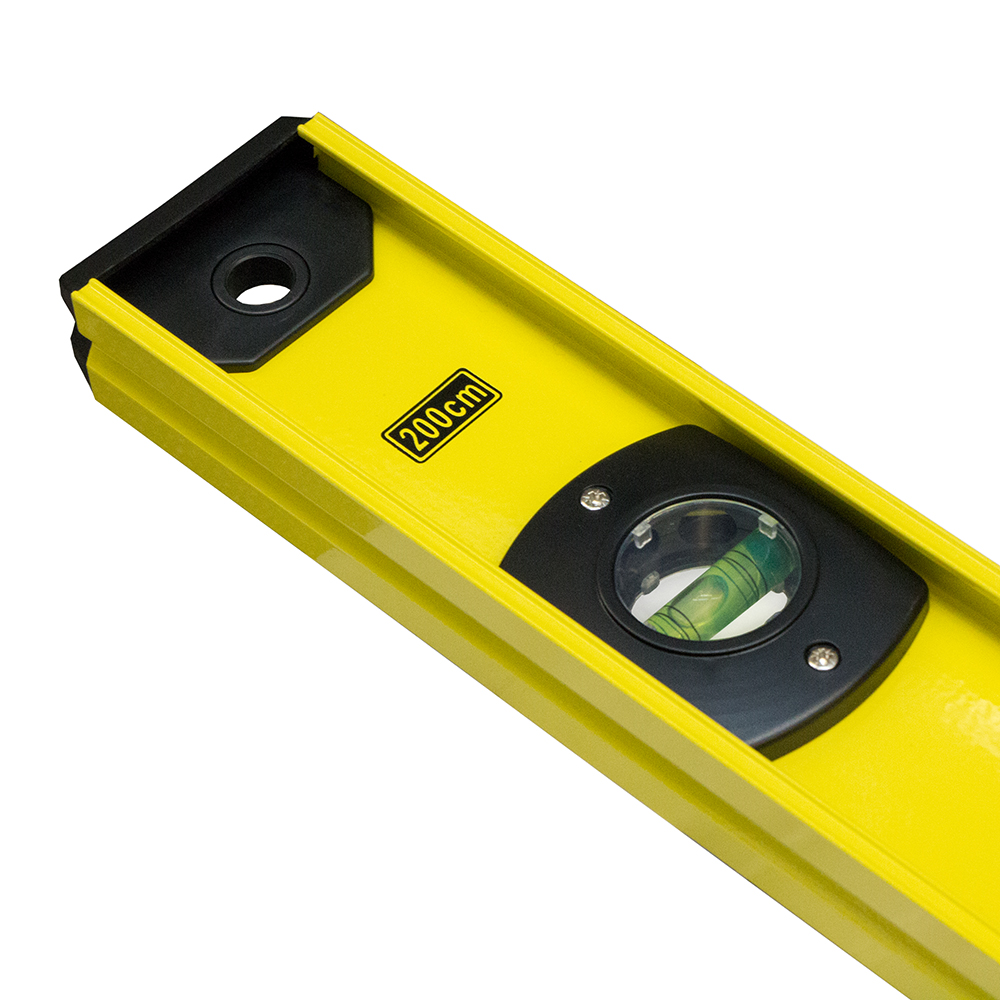 Строительный уровень 200 см имеет усиленный двутавровый профиль толщиной 1,9 мм до покраски. Инструмент оснащен V-образным углублением в одной измерительной поверхности для работы с трубами. Материал корпуса выполнен из алюминия и отличается надежностью, долговечностью и легкостью. Имеет 3 цилиндрические колбы с точностью 1 мм/м.