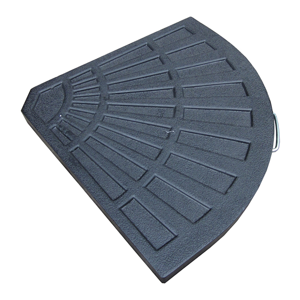 Полирезиновый утяжелитель выполнен в форме четверти круга весом 14 кг. Устанавливается на крестовидное основание садового зонта для предотвращения его опрокидывания.