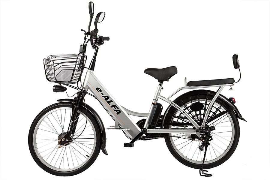 Городской велогибрид E-Alfa – новинка известного производителя электровелосипедов. Эта утилитарная модель на 24-дюймовых колесах создана для тех поклонников персонального двухколесного электротранспорта, кто по достоинству оценит высокую надежность, лаконичность стиля, практичность и удобство повседневного использования. Велогибрид E-Alfa – воплощение функциональности и комфорта. Удобное широкое сиденье с регулировкой высоты, вместительная багажная корзина на руле и мягкий задний багажник с мягким сидением со спинкой - важные детали, которые выделяют модель E-Alfa на фоне конкурентов. Дополнительный комфорт обеспечивают передняя вилка-амортизатор, защитный кожух на цепи, полноразмерные защитные крылья с брызговиками, передняя фара и задний габаритный фонарь, а также мощная центральная подножка, которая позволит запарковать велогибрид вместе с закрепленным на заднем багажнике грузом.