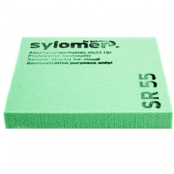 Sylomer SR – уникальный материал производства австрийской компании Getzner, применяемый в качестве упругого элемента для виброизоляции инженерного оборудования, фундаментов зданий, рельсовых путей, в конструкциях плавающих полов и др. Материал представляют собой микропористые полиуретановые эластомеры со смешанной ячеистой структурой, которые специально разработаны для решения задач виброизоляции. Качества материала разрешают воплощать в жизнь полноплоскостные, ленточные либо точечные виброизолирующие опоры, что упрощает ход проектирования. Лёгкость в обработке резанием даёт возможность изготовить опоры заданной конфигурации. Sylomer может применяться для виброизоляции виброактивных устройств различных габаритов и массы. Sylomer SR 55 выдерживает статическую нагрузку 0,055 Н/мм2 и используется для виброизоляции оборудования и конструкций со средним весом. Особенности материала: Низкий модуль упругости во всём интервале рабочих нагрузок. Высокая устойчивость к динамическим нагрузкам. Устойчивость к воздействию внешних сред. Возможность эксплуатации при температуре от -30 до +70°С. Физико-технические характеристики виброизоляционных матов Sylomer SR 55: Цвет зеленый Долговременная статическая нагрузка, Н/мм2* 0,055 Пиковая нагрузка, Н/мм2 (максимум)* 2,0 Фактор механический потерь 0,17 Статический модуль сдвига, Н/мм2 (при предельной статической нагрузке) 0,13 Динамический модуль сдвига, Н/мм2 (при предельной статической нагрузке, 10 Гц) 0,26 Абразивный износ, мм3 1100 Статический модуль упругости, Н/мм2 (при предельной статической нагрузке) 0,367 Динамический модуль упругости, Н/мм2 (при предельной статической нагрузке, 10 Гц)* 0,753 Сопротивление растяжению при деформации 10%, Н/мм2 0,061 Преимуществом данного материала является его уникальный состав, за счет которого любой вид виброопоры Силомер устойчив к средам, с которыми ему приходится контактировать (устойчив к воздействию смазки, масла, красителей, кислот и прочих соединений, которые часто используются в строительстве). Он имеет длительный срок эксплуатации и исключительные показатели виброизоляции. Sylomer способен выдерживать более 2 000 000 циклов нагружения, при воздействии статистической нагрузки материал сохраняет упругие свойства на протяжении десятков лет.