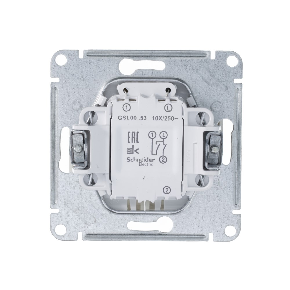 Электрический выключатель Glossa Schneider Electric (Глосса Шнайдер Электрик) GSL001253 скрытой установки снабжен подсветкой, которая позволяет легко ориентироваться в темноте. Данный вид выключателя, без рамки, позволяет установить его совместно с другими розетками или выключателями данной модели под одну совместную рамку, которая приобретается отдельно. Преимущества: Удобный, быстрый и надежный монтаж: - монтажные лапки плотно прижаты к корпусу и облегчают монтаж - простота установки многопостовых комбинаций - телескопическая система выравнивания на неровных стенах - пластиковый механизм выполнен из термостойких электротехнических композитных материалов - 40 000 циклов для выключателей Токоведущие части механизмов закрыты пластиком, поэтому исключается поражение электрическим током. Наличие на основании выключателей схемы монтажа, характеристик изделия позволяют исключить ошибки установки. Номинальный ток: 10А Номинальное напряжение: 220В