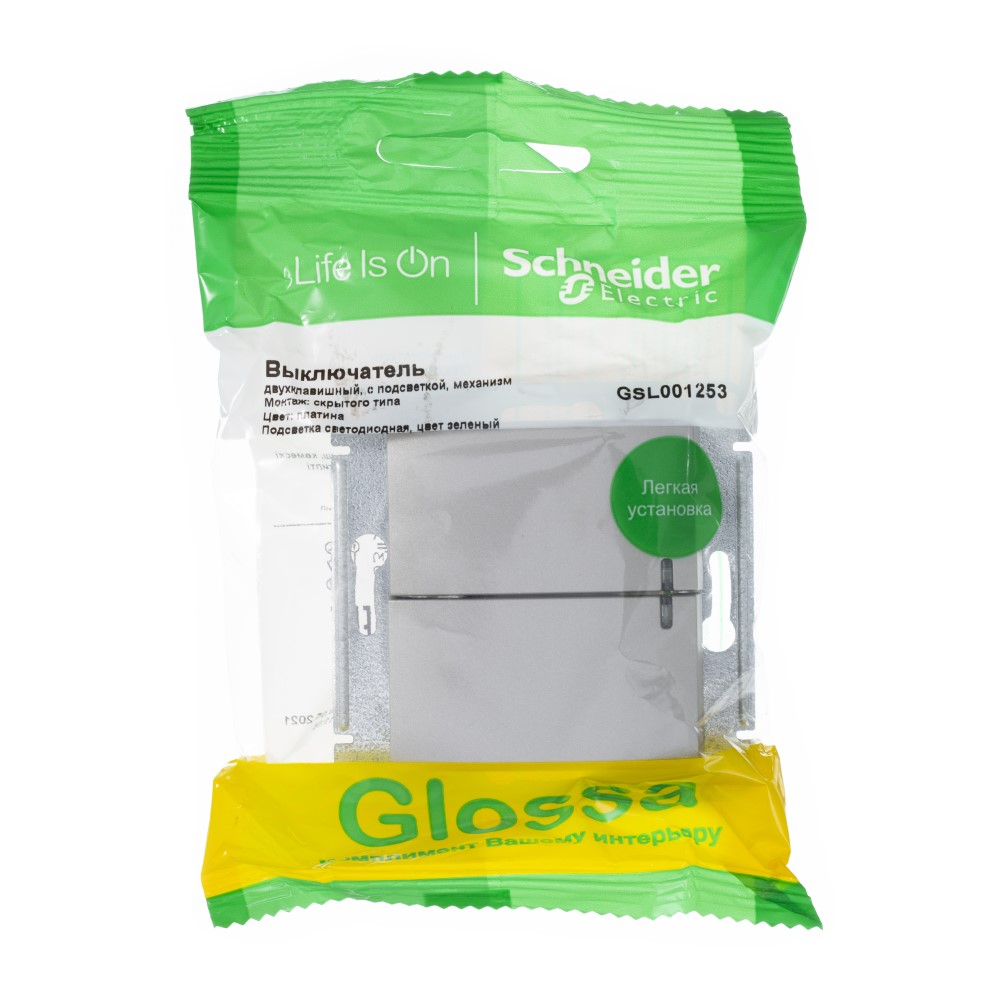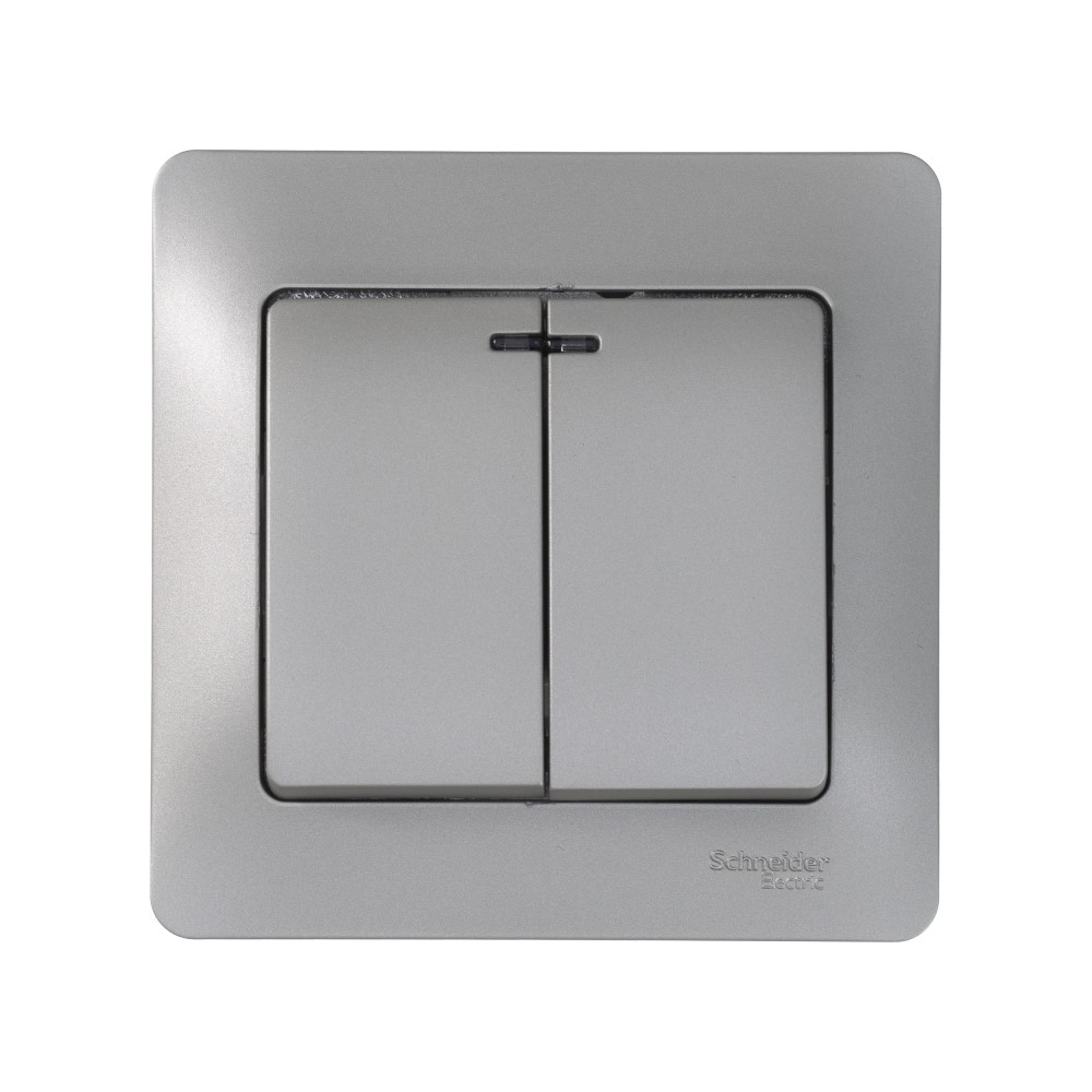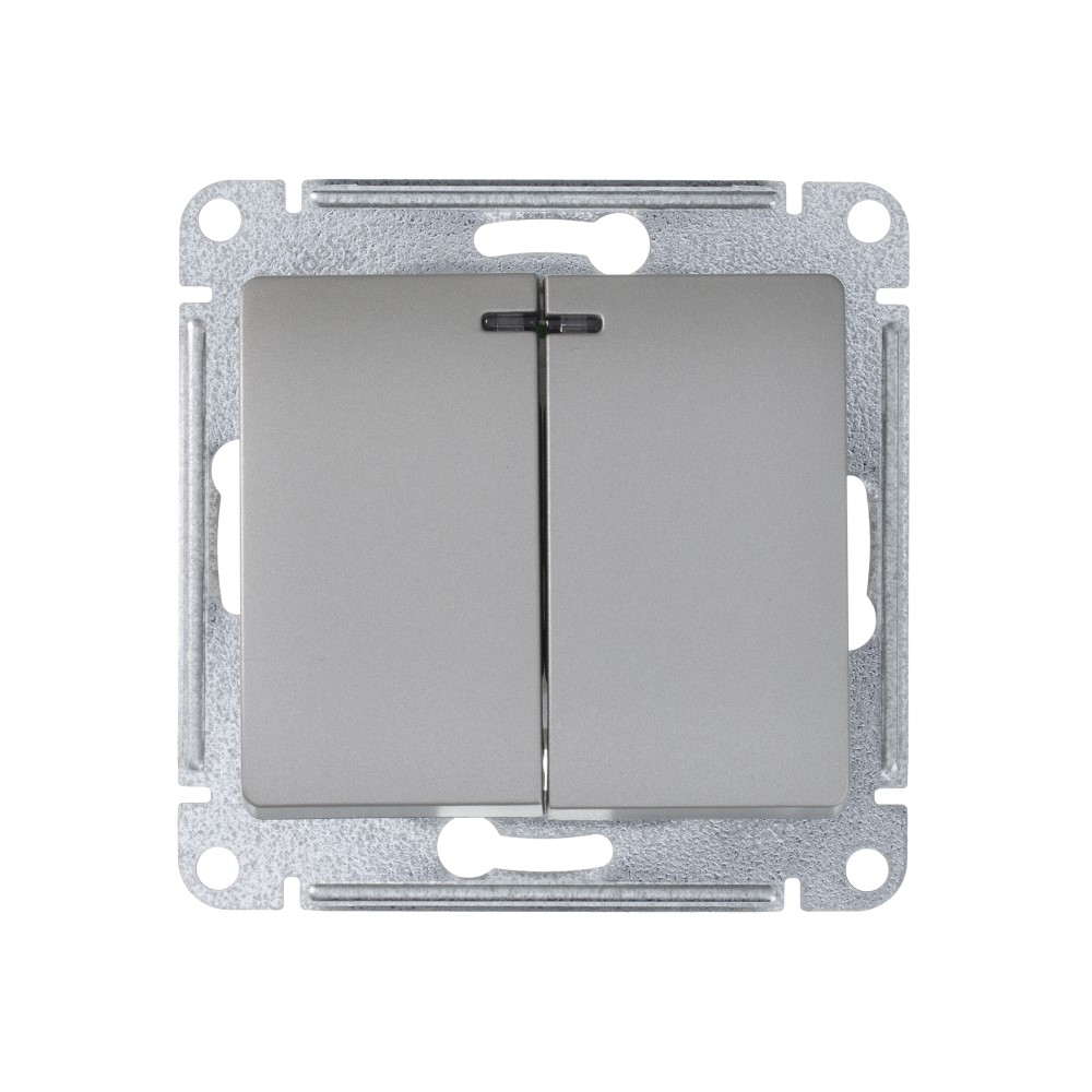 Выключатель двухклавишный Schneider Electric Глосса с подсветкой без рамки платина