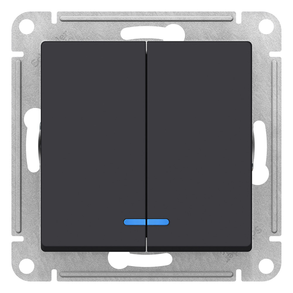 Выключатель двухклавишный Schneider Electric Атлас Дизайн с подсветкой без рамки карбон