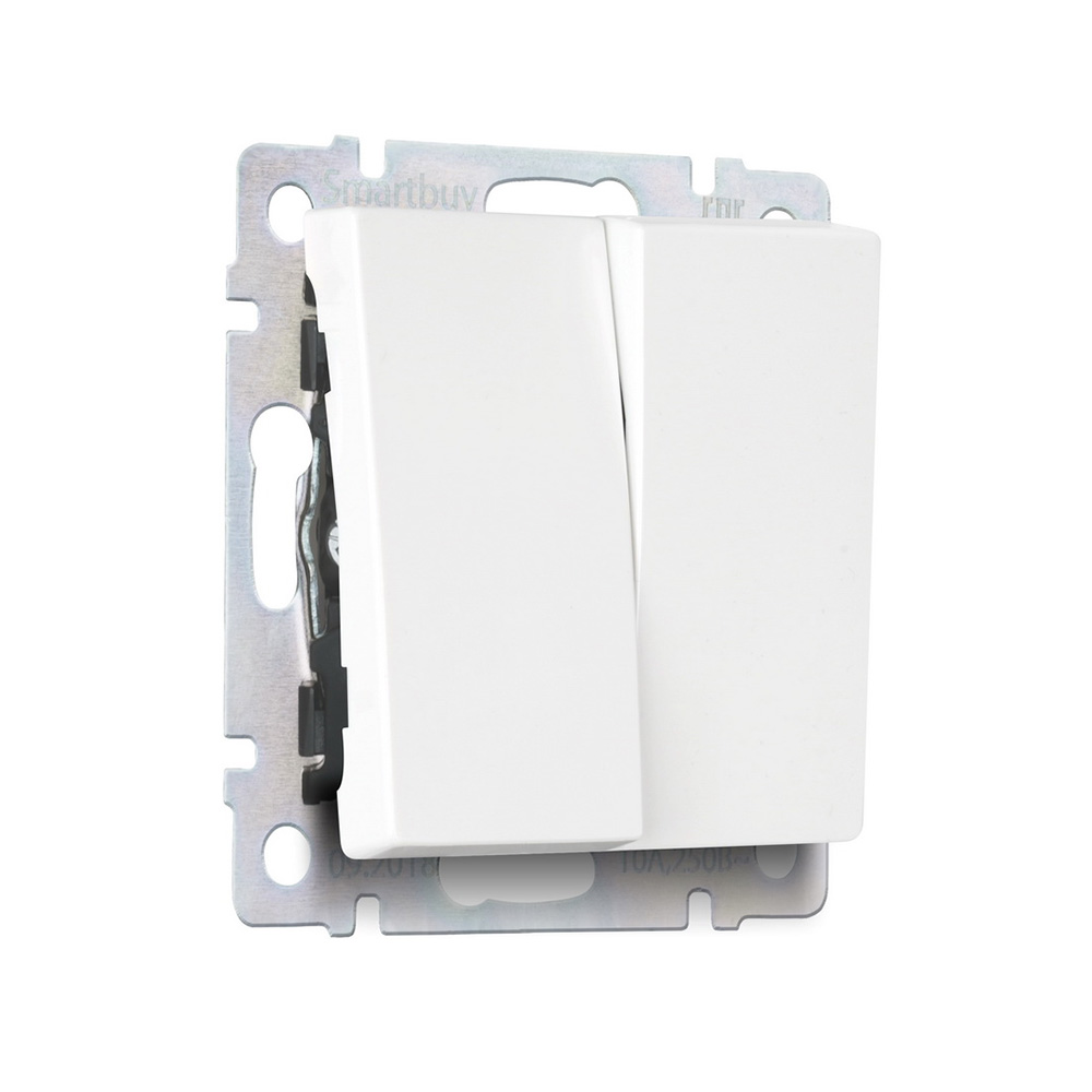 Выключатель двухклавишный Smartbuy Нептун без рамки белый