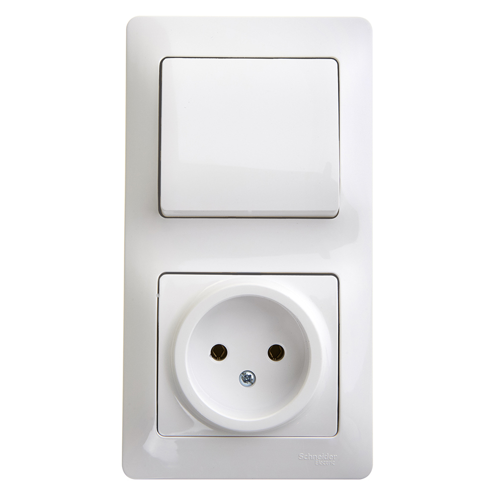 Выключатель одноклавишный + розетка Schneider Electric Глосса с рамкой без заземления белый