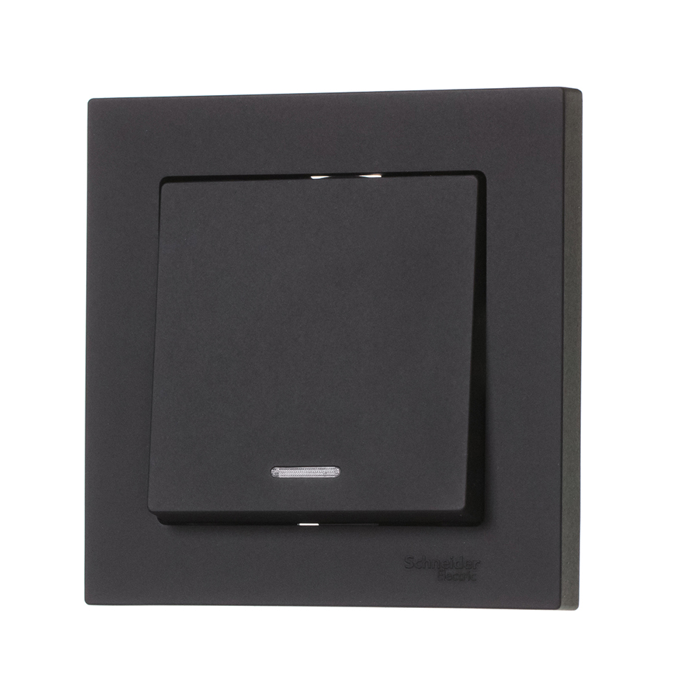 Выключатель одноклавишный Schneider Electric Атлас Дизайн с подсветкой без рамки карбон