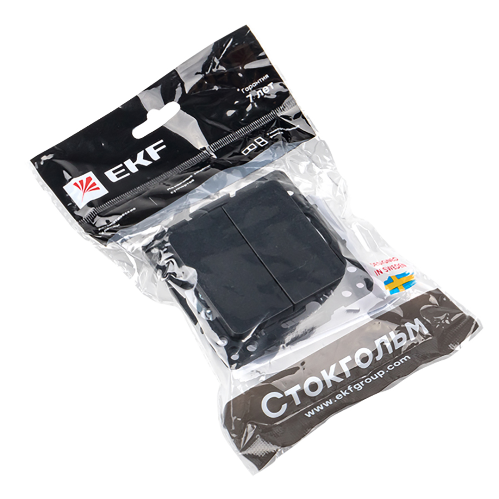 Выключатель проходной двухклавишный EKF Стокгольм без рамки черный