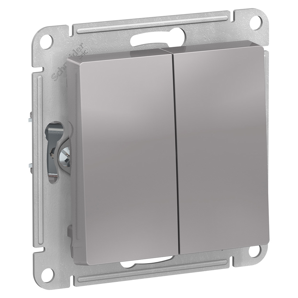 Выключатель проходной двухклавишный Schneider Electric Атлас Дизайн без рамки алюминий