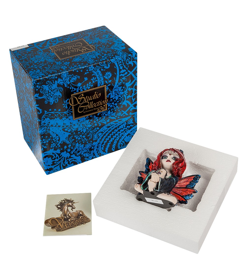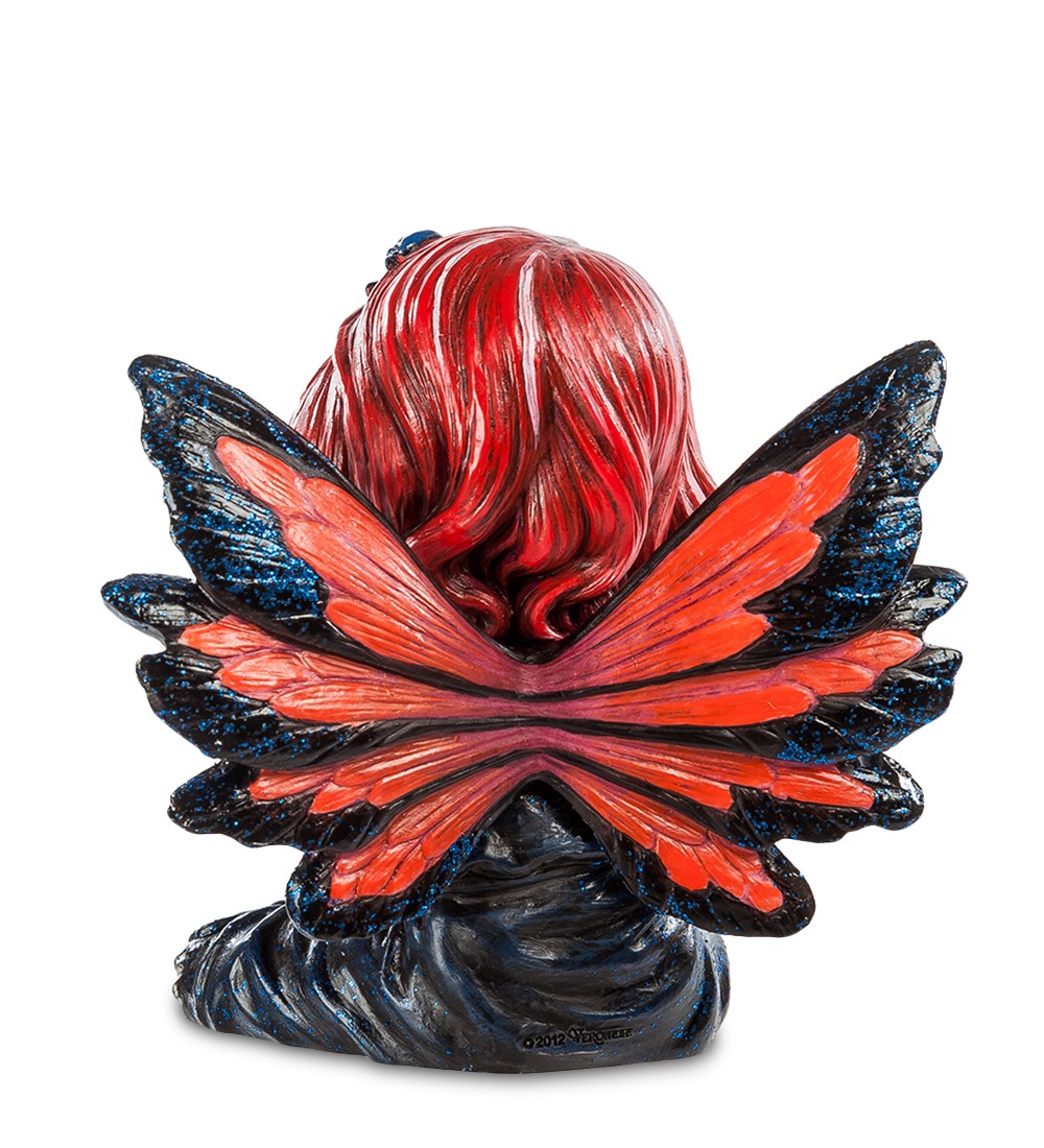 При слове «фея» дети моментально представят себе либо пожилую добрую женщину, способную превращать тыкву в карету, а мышей в кучеров, либо девочку-мотылька, светящуюся в темноте и спешащую на поиски людей, нуждающихся в помощи. «Девочка-фея» в стиле фэнтези задумчива и никуда не спешит. Волшебной палочки у нее нет, но по этому поводу девочка не переживает: она живет в собственном мире, где все желания со временем исполняются сами по себе, без усилий. Кое-что от классической феи у нашей девочки тоже есть: пара крыльев бабочки за спиной, позволяющие ей в любой момент сменить дислокацию и предаться мечтам в новой компании или в одиночестве. Статуэтка раскрашена ярко, в палитре преобладают оттенки красного и синего цветов. Девочка носит черное платье-халат, ее ногти окрашены черным, а на лице макияж в эмо-стиле. Многие настоящие девочки узнают в ней себя. Фигурку можно смело дарить подруге, предпочитающий эмо-стиль, а также ребенку, читающему фэнтези и хорошо знающий этот образ.