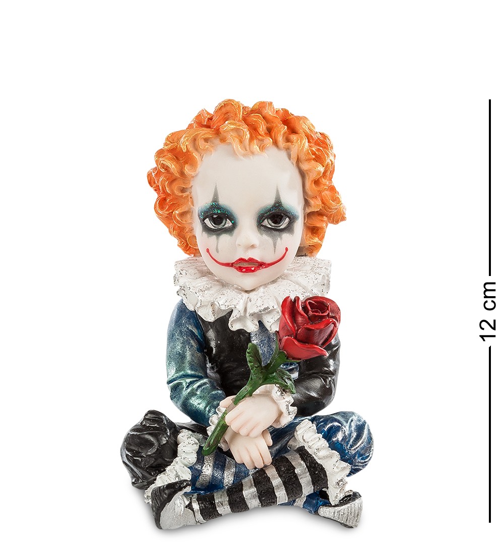 "...Много цветников на свете, Но прекрасней, чем мои вам не сыскать. Словно яркий след кометы Будут розы ваши взоры привлекать…" У шутов тоже есть сердце, это мы помним по страданиям Пьеро, которого не замечала Мальвина с фиолетовыми волосами. Грим нашего шута улыбается до ушей, но глаза его грустны; он наверняка столкнулся с проблемами, универсального решения для которых люди пока не придумали; он влюблен. Шут сидит с красной розой, скрестив ноги, и ждет... возможно, он ждет возлюбленную, чтобы подарить розу и признаться в чувствах, а может быть – автомобиля, который увезет его в другой город, где он сможет забыть о несчастной любви. Шут одет с иголочки и сохраняет самообладание. Будем надеяться на лучшее и пожелаем ему удачи. Статуэтка «Шут с розой» станет полезным подарком влюбленному юноше, а также молодому актеру, которому часто приходится играть романтические роли в спектаклях. Любой романтик не откажется от такого подарка – ведь он узнает в нем себя.