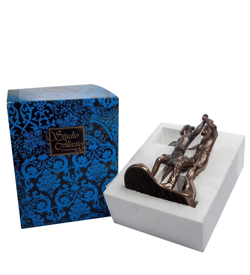 Кто не засматривался выступлениями фигуристов, выполняющих сложные, замысловатые фигуры на льду. Каждый выход - это демонстрация владения всеми группами элементов - шагами, спиралями, вращениеями, прыжками. Здесь важна связь движений спортсмена с музыкой, пластичность и артистизм фигуриста. Фигурное катание первое из всех зимних видов спорта попало в программу Олимпийских игр. Фигурное катание - невероятно красивый и зрелищный вид спорта. В скульптурной миниатюре "Пара фигуристов" спортсмены-танцоры как будто замерли, завершая великолепный пируэт. Фигурка выполнена из полистоуна и окрашена под бронзу так искусно, что почувствовать разницу с металлом можно только по весу, взяв статуэтку в руки. Платье фигуристки слегка окрашено в голубой цвет, что добавляет композиции яркости и выразительности. Статуэтка пары фигуристов - прекрасное украшение интерьера!