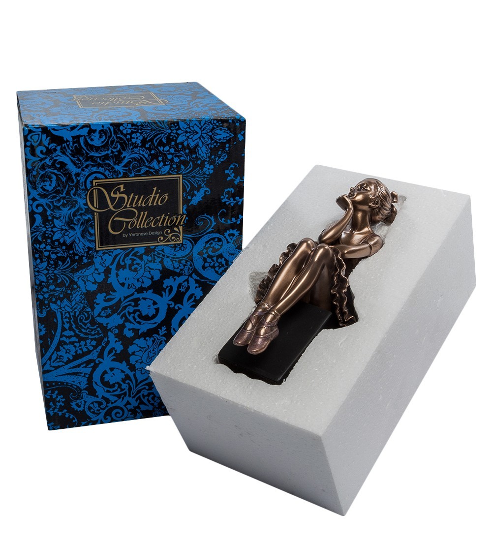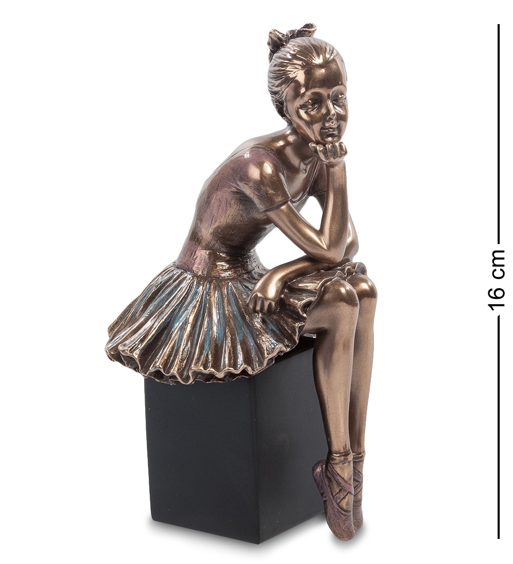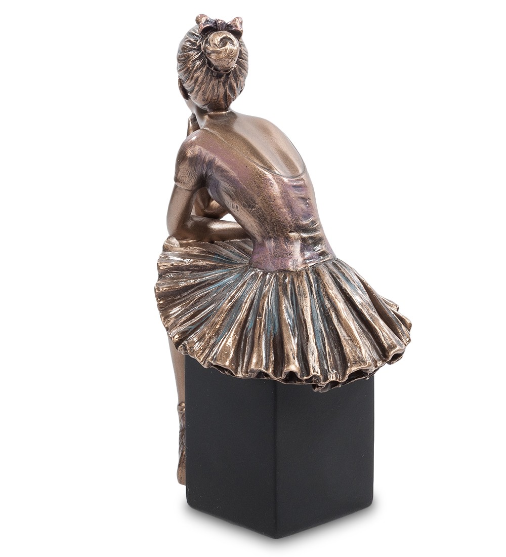 Небольшая статуэтка «Юная балерина» придется по душе всем, кто любит искусство и ценит достижения отечественной балетной школы. Фигурка девочки, одетой в классический наряд балерины и отдыхающей на черном кубе, может многое рассказать о жизни артистов, посвятивших себя балету. У девочки грустное, усталое выражение лица; каждое новое достижение дается ей потом и кровью. Стопы девочки-балерины – в профессиональной стойке, волосы затянуты тугим узлом сзади. В ее терпеливом образе есть что-то притягательное: она обязательно достигнет успеха и ее имя пополнит холл славы мирового балета. Фигурку юной балерины можно подарить ребенку, который увлеченно и не без труда осваивает редкую профессию, а также всем тем, кто имеет отношение к искусству.