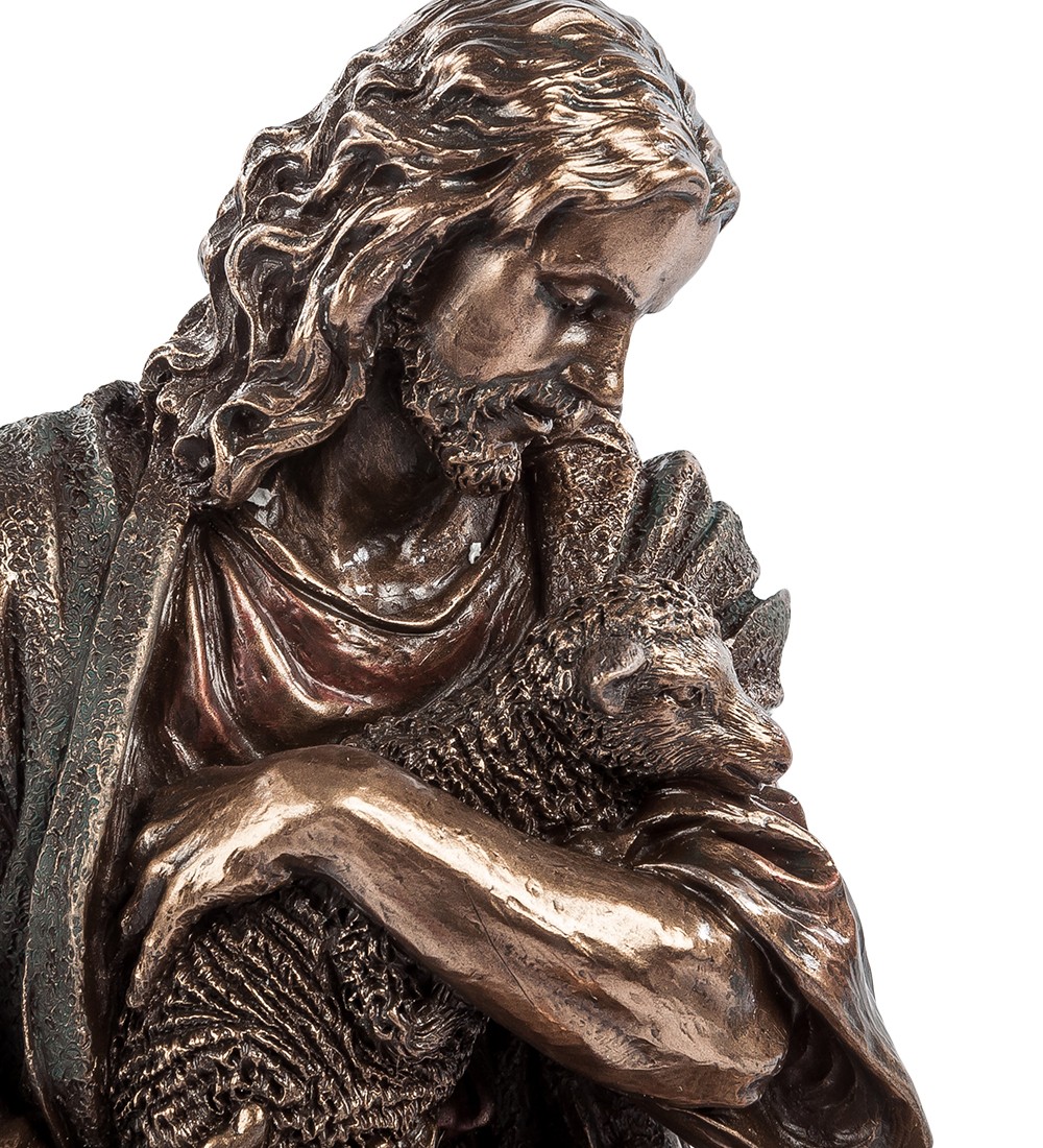 Изящная и красивая статуэтка Иисуса изображает Сына Божьего в роли «Доброго Пастыря». Первые символичные картины Спасителя появились в Ветхом Завете. Искусство иконописи не было развито, как сейчас, поэтому святых людей изображали иначе. Сын Божий говорил, что жизнь свою полагает на овец. Самым первым и драгоценным образом Спасителя для христиан является именно Добрый пастырь. Само словосочетание означает для людей любовь Господа. Мотивы и действия Доброго пастыря всегда чисты и он отдает бескорыстно любовь людям, хотя многим этого не понять. Он не пытается использовать овец ради наживы или благосостояния, он приходит сделать их счастливыми. Это означает, что люди привыкли закрывать свои сердца и не пускать в них любовь. Когда приходит Иисус, то человек открывает свою душу ему. Он Добрый Пастырь, несущий бескорыстно людям своё тепло и заботу. Фигурка Христа безупречно выполнена из полистоуна и изображает Иисуса, который взял на руки ягнёнка, обнял его и с особенной заботой и любовью смотрит на животное. Статуэтка Иисуса Христа может стать частью коллекции библейского направления и красиво красоваться на полке у коллекционеров. Статуэтка Пастыря – отличный подарок верующим людям, за неё они будут очень благодарны.