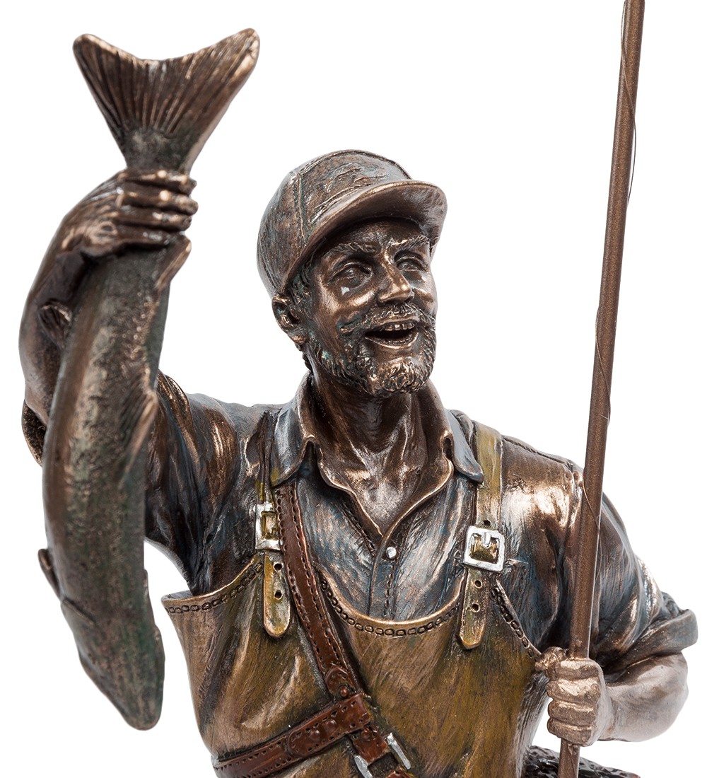 "И пусть опять мой не велик улов, скажу - да разве в рыбе суть!.." Статуэтка "Рыболов" прекрасный элемент декора. Сувенирная фигурка - великолепный выбор в подарок для мужчины. И не обязательно заядлому рыбаку. Перед нами фигурка рыбака с богатым уловом в руке. Мужчина самодовольно и победоносно улыбается невидимому спутнику. Большая статуэтка рыбака - символ победы, достижения цели и получения высоких результатов! Изящная фигурка любителя рыбной ловли выполнена из полистоуна и окрашена под бронзу, что делает внешний вид статуэтки благородным и богатым.