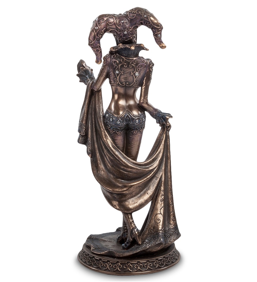 Арлекин - персонаж итальянской комедии, самая популярная маска итальянского площадного театра. Он весел и наивен, не прочь и попроказничать. И почему бы леди не примерить маску Арлекина? Арлекин - персонаж итальянской комедии, которая стала популярна в театрах практически всех стран. Традиционно Арлекин это мужчина и главным элементом его костюма считается шляпа с бубенцами. Но если вы не любитель шаблонов, то статуэтка "Леди Арлекина" Вам обязательно понравится. Фигурка Арлекина выполнена из полистоуна и декорирована самоцветами. Загадочный Арлекин как будто снял маску и плащ, а под ними неожиданно оказалась юная красавица. Удивите и вы своих родных таким приобретением или сделайте необычный очаровательный подарок.
