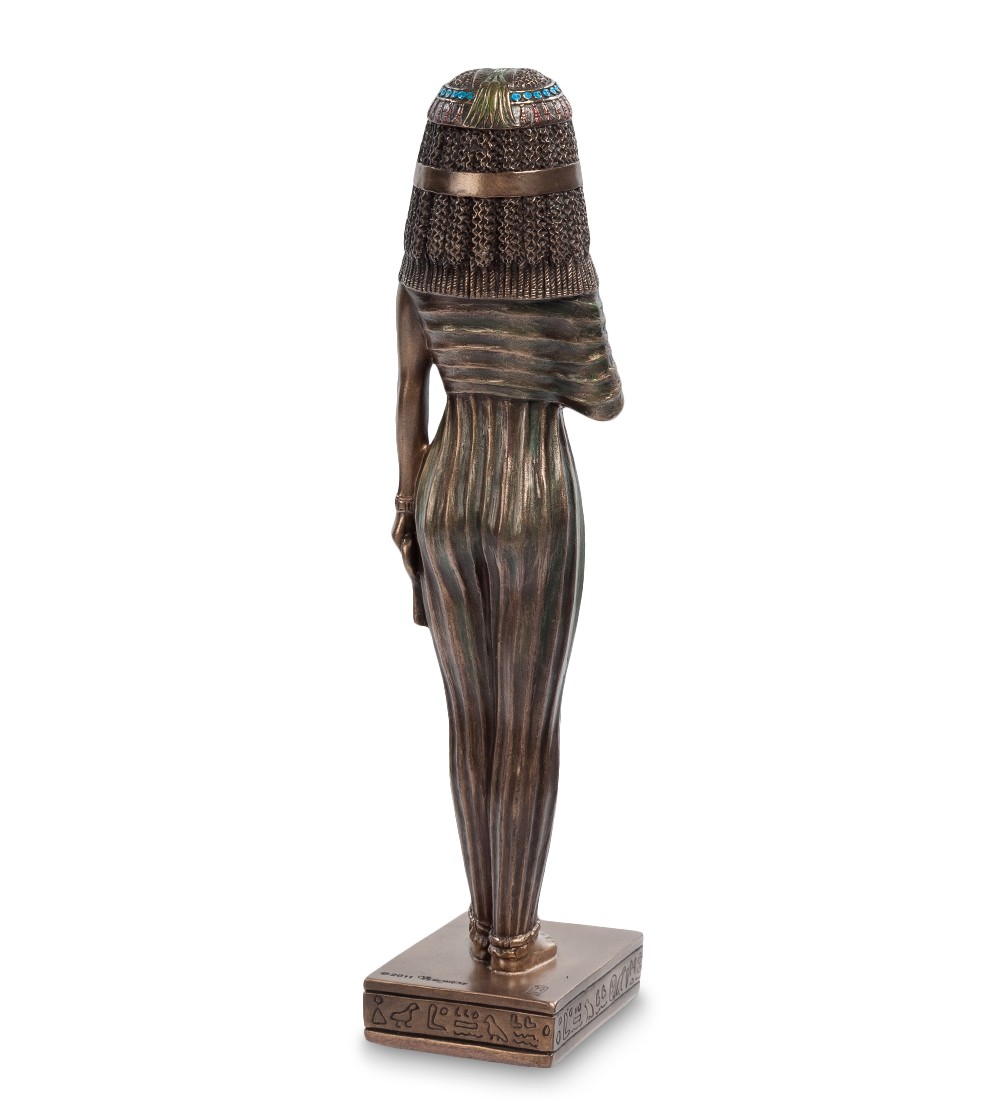 Боги Древнего Египта исчисляются тысячами, пантеон этих богов многочисленен. То, что видели древние египтяне – земля, вода, солнце вскоре начиналось почитаться, наделялось именем и обожествлялось. Статуэтка «Египетская богиня» изображает древнюю египтянку в наряде жрицы. Языческая сущность египетской мифологии требовала обожествлять любое явление природы и любое событие в жизни человека, которое он не мог контролировать. Количество богов Древнего Египта огромно, и далеко не все их великие деяния изучены современными культурологами. Наша статуэтка не имеет имени: это полезный собирательный образ, дающий представление о культуре древнего Египта. «Египетская богиня» молода и привлекательна; как и большинство восточных женщин, Богиня имеет небольшие стопы ног и худощавое телосложение. Правильные черты лица и спокойный взгляд говорят о необычном происхождении и серьезной миссии. Классический наряд, который в Древнем Египте носили наделенные властью, скромен, но отличается особым изяществом. Фигурка сделана из полистоуна и раскрашена в медный цвет, отдельные элементы одежды окрашены синим. Подарить Богиню можно мужчине, ценящему утонченные черты женской красоты, а также всем тем, кто интересуется историей древнего мира.