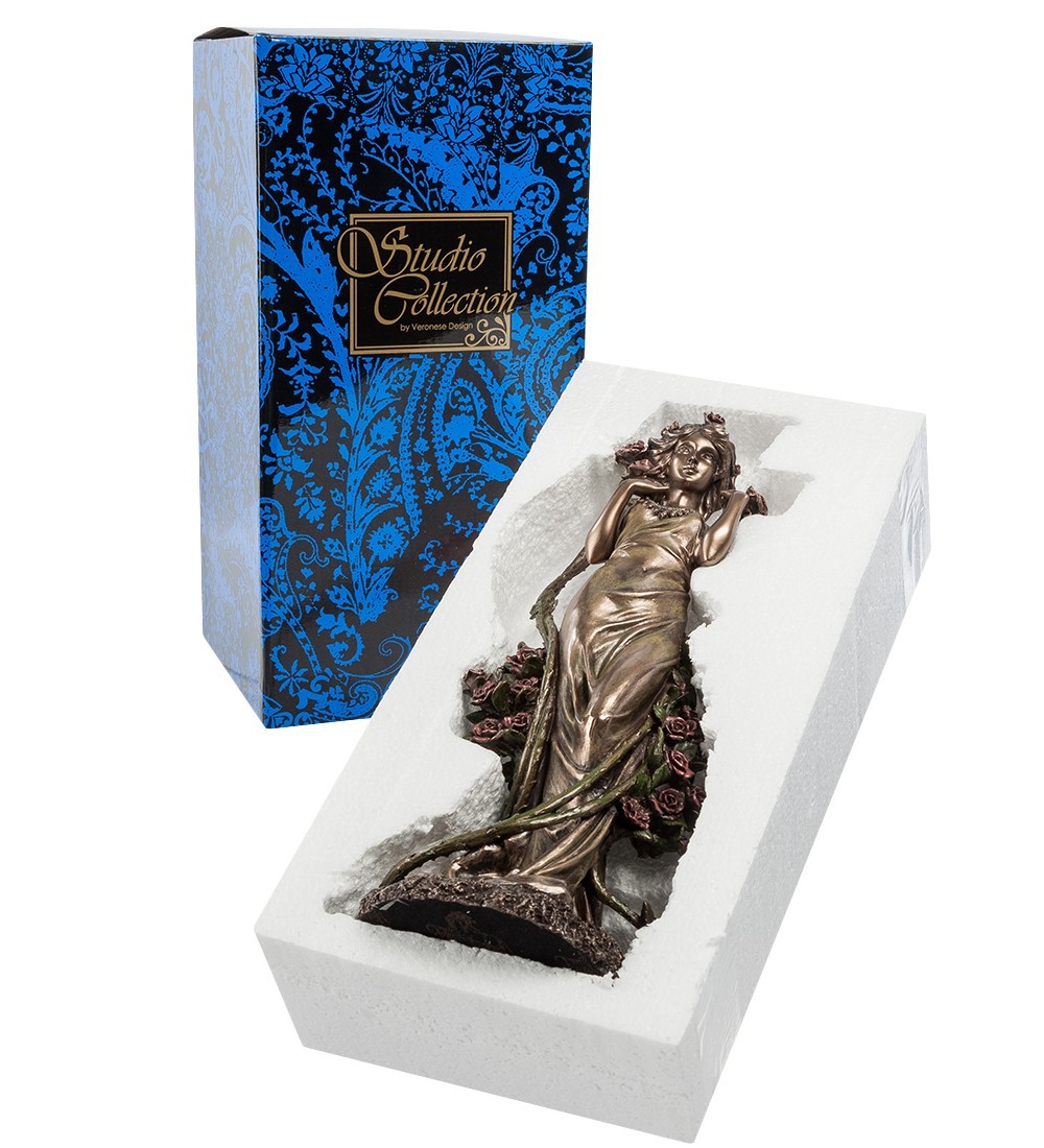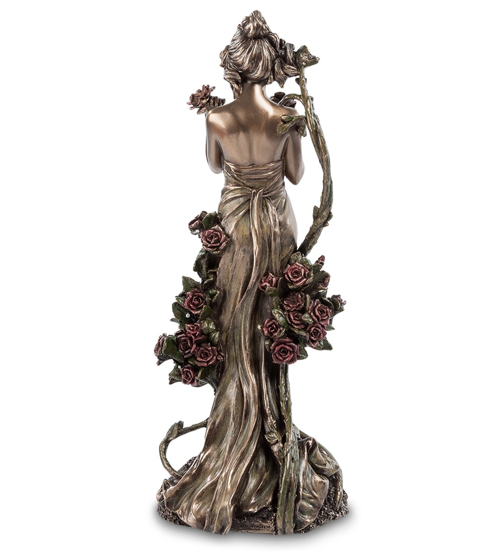 Статуэтка выполнена по картине известного чешско-моравского живописца Альфонса Мариа Мухи "Цветы - роза" 1898 г. В нашей стране имя знаменитого чешского художника Альфонса Мухи мало известно. А между тем оно стало буквально символом живописи конца «золотого», – начала «серебряного» веков... Его стиль в живописи, архитектуре, малых декоративных формах так и назвали (и называют поныне) – «стилем Мухи».