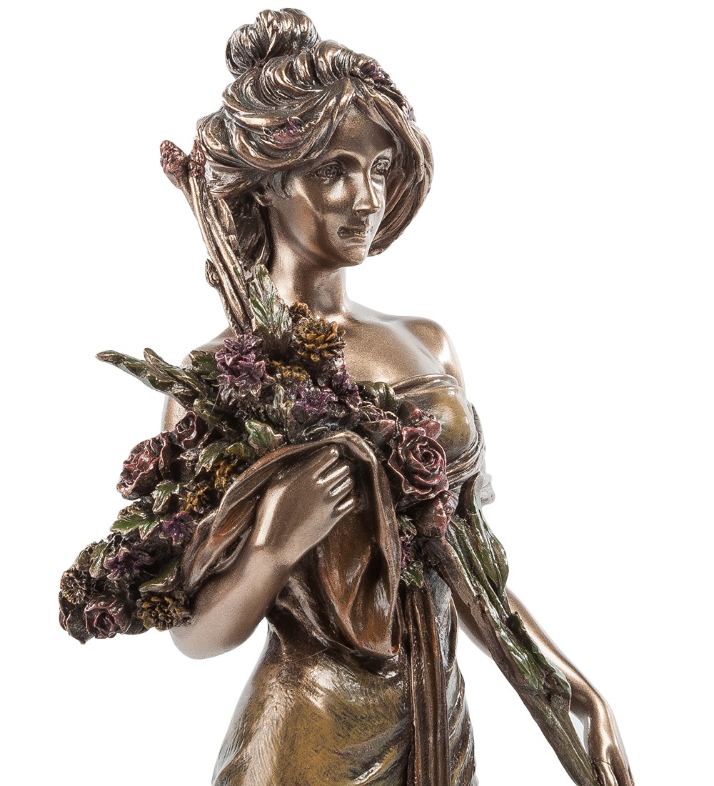 Выполнена по картине известного чешско-моравского живописца Альфонса Мариа Мухи "Сезоны - весна" 1896 г. В нашей стране имя знаменитого чешского художника Альфонса Мухи мало известно. А между тем оно стало буквально символом живописи конца «золотого», – начала «серебряного» веков... Его стиль в живописи, архитектуре, малых декоративных формах так и назвали (и называют поныне) – «стилем Мухи».