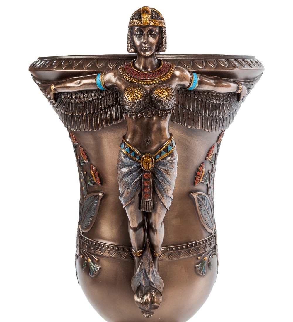 Стиль Арт Деко (Ар Деко, ар-деко, арт-деко) возник в начале двадцатого века. Представлял синтез модерна и неоклассицизма. Этот стиль отличает роскошь, дороговизна, шик, строгая закономерность, этнические геометрические узоры. В нем нашли отражение черты греко-римского классицизма, искусства древних государств - Вавилона, Древнего Египта, Ассирии, элементы культуры Ацтеков и Африканского дизайна. Египет – это страна тайн, загадок и, конечно же, древних пирамид. Наверное, каждый из нас хотел бы побывать в ярком солнечном Египте хотя бы раз в жизни. Понаблюдать за людьми, вкусить лакомства и исследовать пирамиды. Египетская ваза в стиле Ар-деко - это отличный способ порадовать любого, кто мечтает побывать в Египте. Ручная работа завораживает с первого взгляда. Невзирая на небольшой размер, по этому произведению искусства можно судить, насколько прекрасна страна Египет. Выполненная под бронзу, ваза в стиле Ар-деко «Египетские богини», способна украсить интерьер Вашего дома, стать отдельным арт-объектом и восхищать своей красотой.