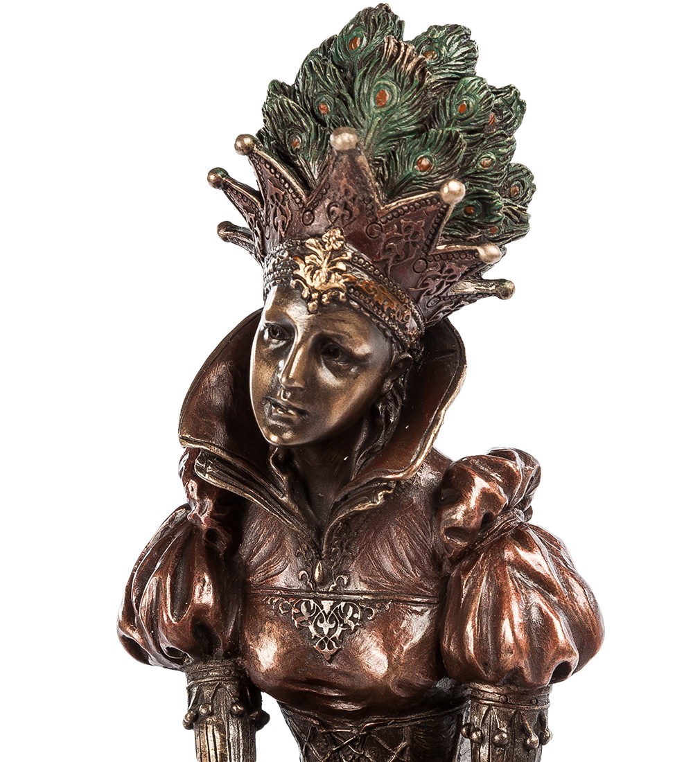 Стиль интерьера складывается из милых мелочей. И не последняя роль в оформлении дома или офиса принадлежит статуэткам. Правильно подобранная, она подчеркнет индивидуальность декора, добавит изюминку. Статуэтка "Шут" расскажет о изысканном и тонком вкусе владельца. Шут – профессия, имеющая давнюю историю. Первые шуты появились еще в Древнем Риме, и выполняли ту же функцию, что и современные клоуны: в их обязанности входило смешить монарха или богатого аристократа, имевшего средства на такое развлечение. Традиционно шут носит колпак с тремя бубенцами. Шутовской колпак был придуман во времена раннего средневековья, изначально являясь атрибутом «ослиных процессий». Три ушка колпака символизируют ослиные уши и хвост; у некоторых шутов также была погремушка, наполненная горохом (отсюда возникло выражение «шут гороховый»). Статуэтка «Шут», сделанная из полистоуна цвета затемненной бронзы, изображает женщину в шутовском наряде. Вместо классического колпака на ее голове – корона с множеством лепестков, на кончиках которых можно заметить небольшие бубенчики. Корона украшена золотым рисунком и зелеными перьями; скорее всего, девушка работает шутом у сказочно богатого монарха. На девушке платье, фасон которого был создан три столетия назад, старинные башмачки с загнутыми носами, а в руках – золотистая маска. Фигурку «Шут» можно подарить кому-нибудь из друзей на день рождения: она будет прекрасным сувениром для человека, обладающего хорошим вкусом и артистическими способностями.