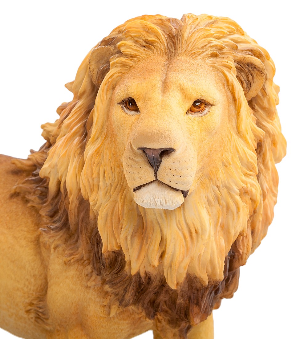 Статуэтка ''Благородный Лев'', высотой 25 см. "...Я с восхищеньем вижу льва: Спокойно вскинута и хмура Его большая голова. Хвостом он шевелит едва. Светлеет царственная шкура…" Лев – король зверей. Так его называли раньше, так он зовется и сегодня. Несмотря на то, что в природе существует много других животных, которые превосходят льва в силе и ловкости, благородство льва никто не отменяет. Этот зверь, благодаря своей гриве и устрашающему рыку, был и остается повелителей всей дикой природы. Статуэтка льва из качественного полистоуна изображает дикое животное, которое, кажется, смотрит в самую душу, понимает каждую вашу эмоцию и чувство. Купить фигурку льва в свой дом – означает приобрести кусочек дикой природы, которая всегда будет поднимать вам настроение и радовать своим великолепием.