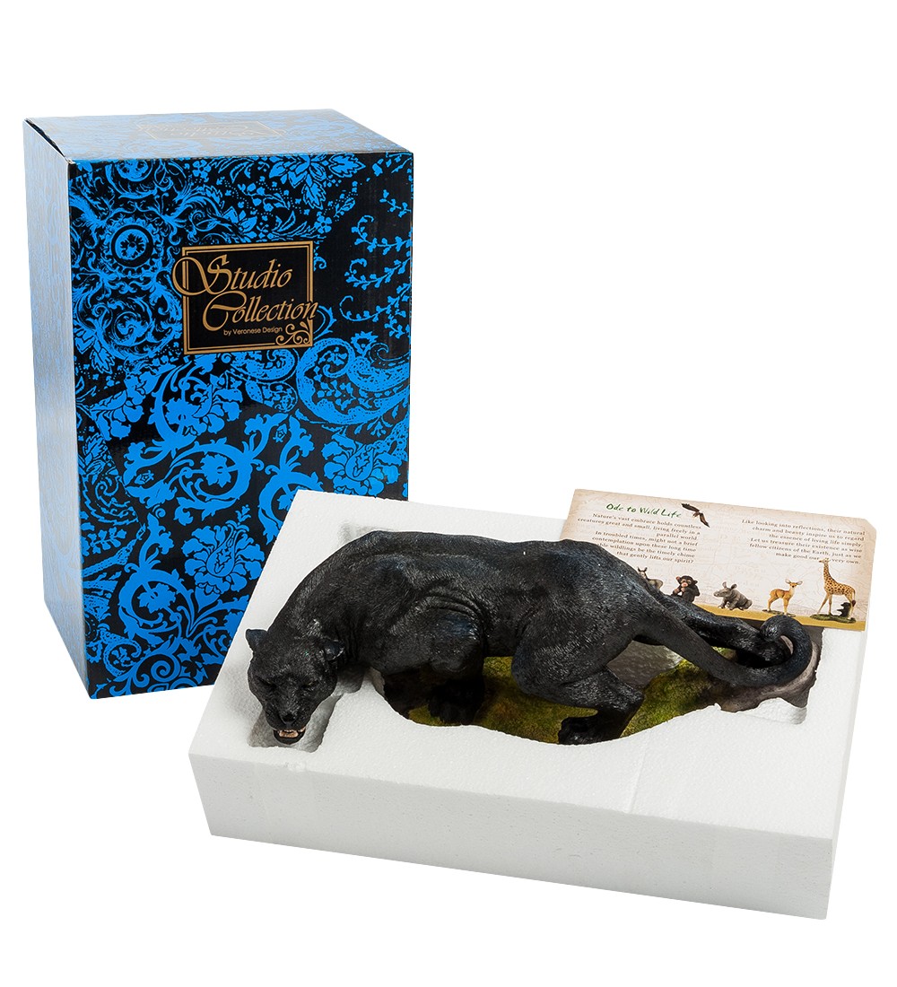 Статуэтка ''Пантера'', высотой 15 см. "...Слилась пантера с темнотой, Крадётся словно призрак ночи, Огнём её пылают очи, Клыки сверкают белизной…" Стильная статуэтка "Пантера" станет прекрасным украшением интерьера или эффектным подарком. Грациозная пантера - символ силы, ловкости и смелости. Большая кошка застыла в агрессивной позе, хищно открыв пасть. Она всем видом говорит, что не даст себя в обиду. Фигурка пантеры принесет успех и победу своему хозяину.