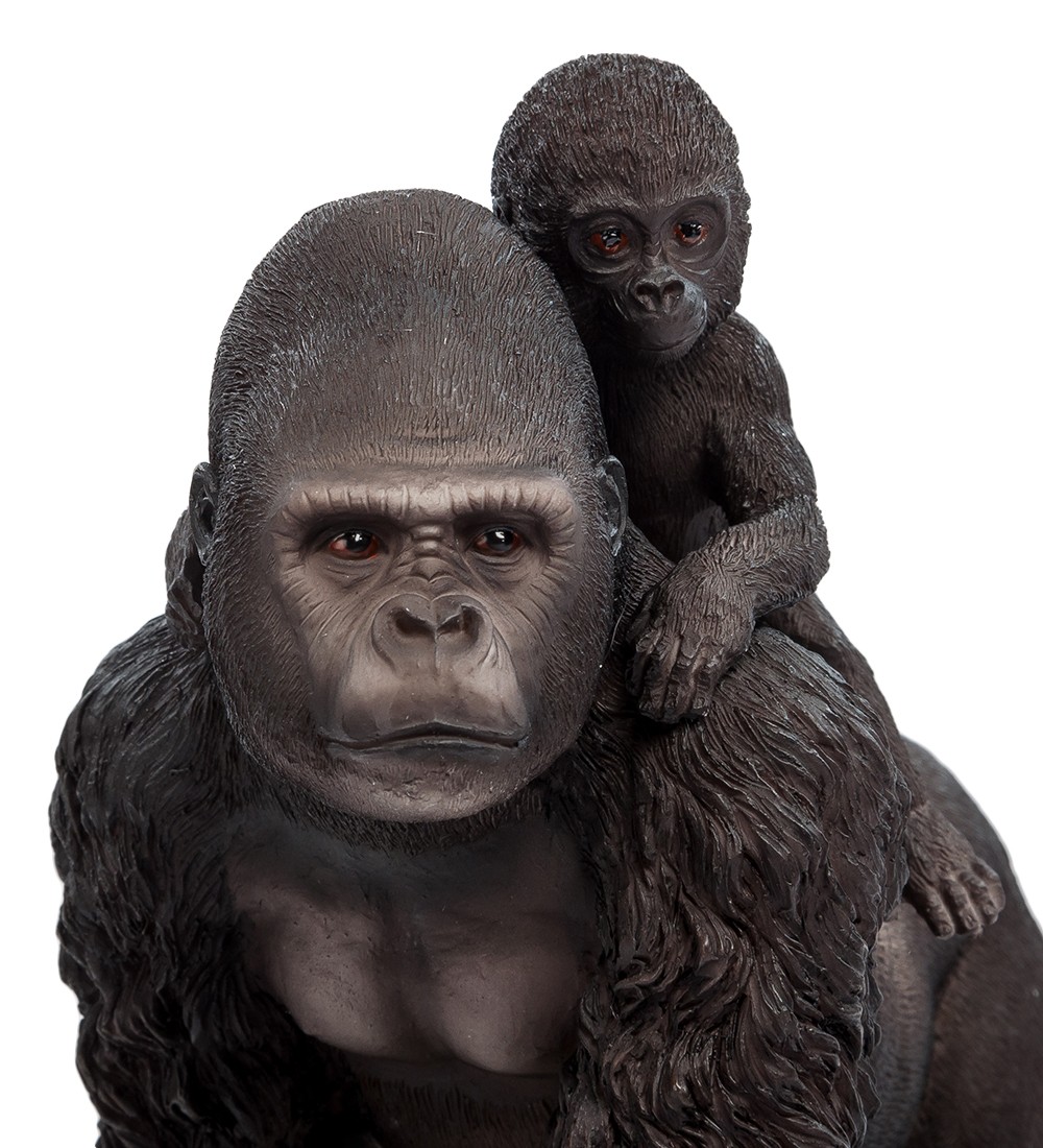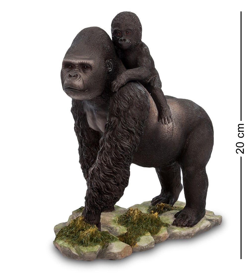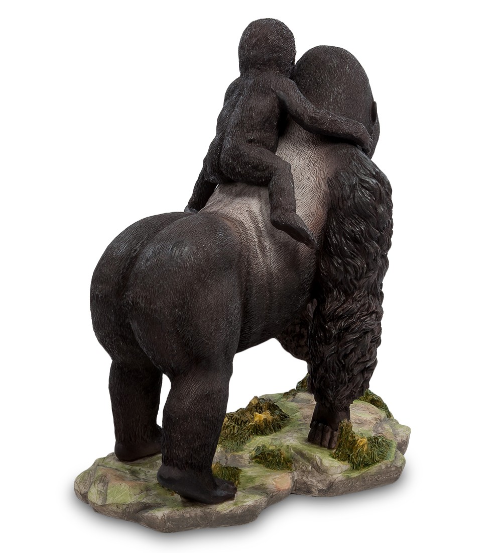 Статуэтка ''Горилла с детенышем'', высотой 20 см. Гориллы — род обезьян, включающий самых крупных современных представителей отряда приматов. В природе гориллы обитают в экваториальных лесах западной и центральной Африки. Статуэтка «Горилла с детенышем» станет стильным и оригинальным украшением вашего дома. В этой композиции изображена величественная и гордая горилла, на спине которой восседает маленький детеныш. Кажется, что еще мгновение назад животные блуждали по экзотическим тропикам, а сейчас они попали в наш мир и с интересом рассматривают его. Статуэтка выполнена из уникального материала полистоун, который позволяет создавать необычайно реалистичные и качественные изделия.