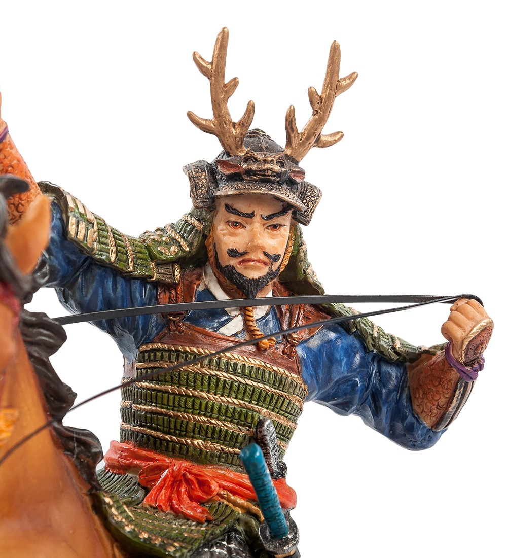 "Когда сталкиваешься с неудачами и трудностями, недостаточно просто не беспокоиться. Когда сталкиваешься с трудностями, нужно смело и радостно бросаться вперед. Преодолевая препятствия одно за другим, ты будешь действовать в соответствии с пословицей: «Чем больше воды, тем выше корабль» Мудрость самураев. Самураев часто показывают в кино и по телевизору; как они выглядят, знает любой школьник. Но не все знают, что династия самураев существует почти 1000 лет, и что в средние века самураи выглядели совсем иначе. От прежнего вида знаменитых японских воинов остался лишь самурайский меч и хладнокровие, с которым самураи уничтожают врагов и готовы расстаться с собственной жизнью, сохранив честь и достоинство. Статуэтка «Самурай на коне» показывает, как выглядели японские воины в далеком прошлом. В правой руке седока – длинное острое копье, в левой – поводья верного коня. Меч, без которого самурая невозможно представить, расположен на поясе воина, с левой стороны, рядом с небольшим кинжалом. Судя по яркой одежде самурая и красивому оформлению ножен, он далеко не из рядовых. Японский наездник абсолютно спокоен, и фигурка непонятным образом передает наблюдающим это спокойствие. Если вы приобретете фигурку «Самурая на коне» и поставите на рабочем столе, никакая работа не будет вызывать у вас раздражение.