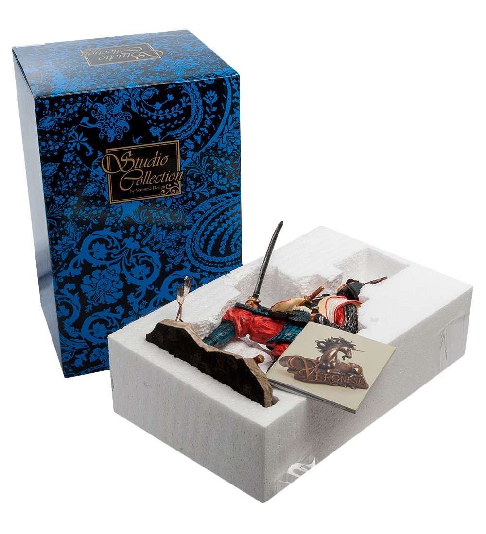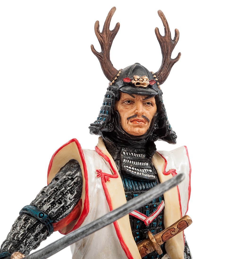 "Когда сталкиваешься с неудачами и трудностями, недостаточно просто не беспокоиться. Когда сталкиваешься с трудностями, нужно смело и радостно бросаться вперед. Преодолевая препятствия одно за другим, ты будешь действовать в соответствии с пословицей: «Чем больше воды, тем выше корабль» Мудрость самураев. За почти тысячелетнюю историю своего существования самураи создали не только кодекс поведения, но и коллекцию мудрых изречений, произнесенные мудрыми японскими феодалами в разные годы. Ознакомления с цитатами будет недостаточно, чтобы пополнить число знаменитых японских воинов, но достаточно, чтобы подготовить себя к серьезным свершениям. Фигурка «Самурай», сделанная из полистоуна, поможет почаще вспоминать о мудрости, с которой ассоциируется страна восходящего солнца и восток в целом. Самурай, который, судя по одежде, жил в Японии 18-го века, изображен во время сражения. Неотъемлемый атрибут, самурайский меч, самурай положил под ноги, и вооружился коротким изогнутым клинком, с которым азиатские воины также отлично управлялись. На лице самурая – олимпийское спокойствие, на голове – шлем, украшенный оленьими рогами, на теле – костюм из легкой брони, поверх которого надета бело-красная рубашка, украшенная желтыми лацканами. Стопы воина обуты в желтые походные сандалии. «Самурая» можно преподнести знакомому военному, любителю восточных боевых искусств, а также любому, кто ценит восточную культуру.