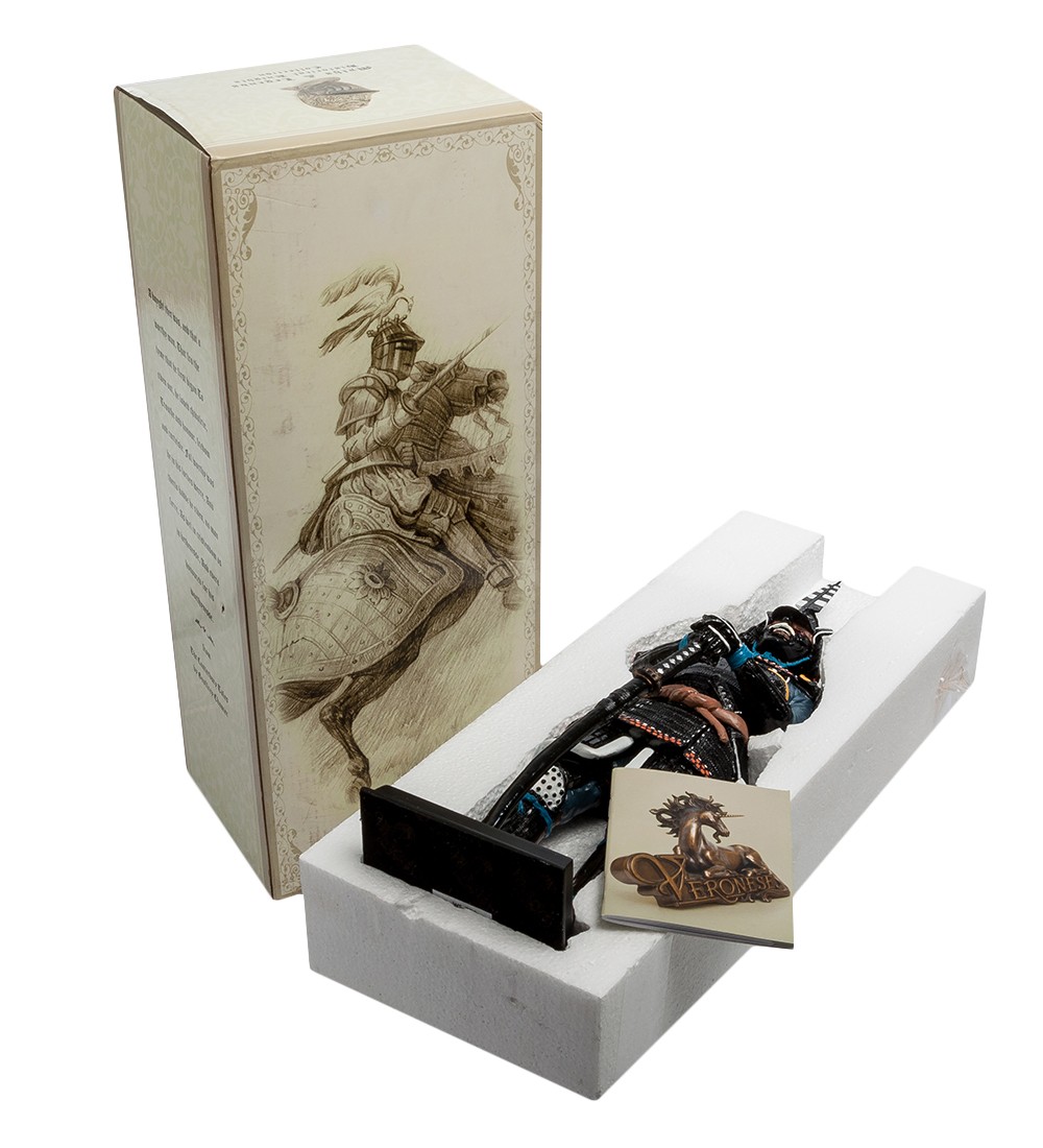 Ода Нобунага — военно-политический лидер Японии периода Сэнгоку, один из наиболее выдающихся самураев в японской истории, посвятивших свою жизнь объединению страны. Мы все слышали про самураев – отважных воинов, династия которых существует в Японии многие столетия. Самураи скромны и аскетичны, хорошо образованны и всегда готовы умереть за хозяина или свободу родной страны. О современных самураях снято много приключенческих фильмов, и их образ мы себе более-менее представляем. Однако о самураях, существовавших в период Сэнгоку, информации значительно меньше. Как выглядел средневековый самурай, чем он отличается от японских воинов 20-21 веков? Статуэтка «Феодал Ода Нобунага» изображает высокопоставленного средневекового самурая в боевом костюме. Он опирается на классический самурайский меч, его лицо защищает маска, на теле – множество защитной амуниции разного цвета; открытыми остались лишь стопы ног, обутые в легкие сандалии, и пальцы рук, в которых самурайский меч становится опасным, безжалостным оружием. Фигурку самурая понравится любителям японской истории, боевых искусств, военным, а также тем, кто предпочитает оформлять интерьер в японском стиле.