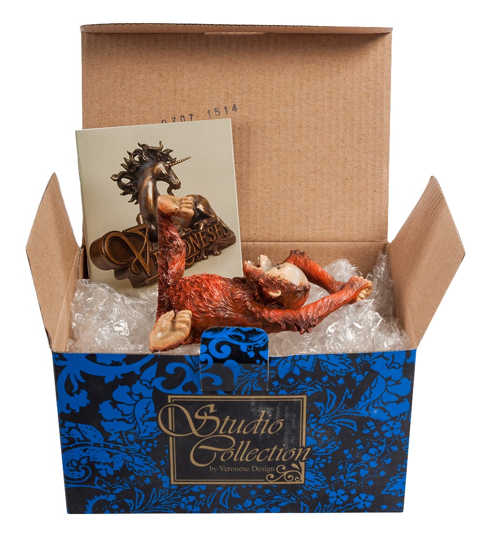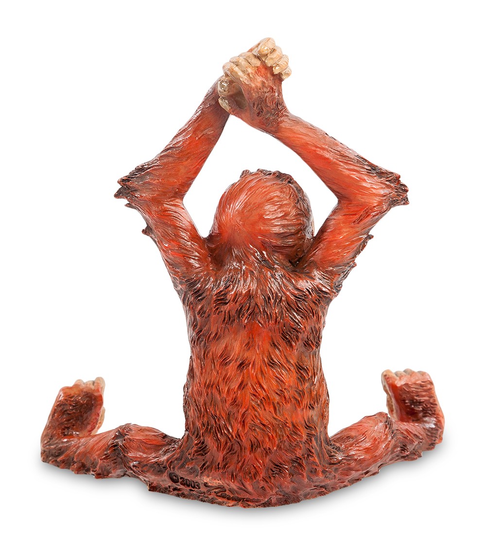 Статуэтка ''Детеныш орангутана'', высотой 10 см. Статуэтка «Детеныш орангутана» отлично подойдет как коллекционерам, так и в качестве подарка ребенку. Фигурка обезьянки выполнена из полистоуна - прочного и надежного материала. Веселый детеныш орангутанга везде найдет себе друга и никого не оставит равнодушным. Статуэтка упакована в красивую подарочную коробку фирменного синего цвета с изысканным рисунком.